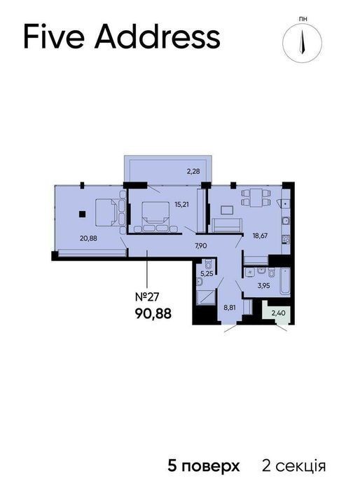 РОЗТЕРМІНУВАННЯ! Без комісії для покупця. Продаю 2кім. квартиру у ЖК Five Address \ Resident Development. Сихівський р-н. вул. Раковського, бічна вул. Зелена, Бузкова, Навроцького та ін. Розвинена інфраструктура, зручна локація. Одразу біля будинку: Арсен, McDonald's, хороша транспортна розв'язка і багато різноманітної інфраструктури. Секція: 2 Площа: 90.88 м2. Поверх: 5\11. Опалення: Індивідуальне газове. Стеля: 2.8м. Здача на кінець 2025р, активне будівництво. Закрита для авто та сторонніх територія; підземний паркінг з ліфтом. Телефонуйте - надам всю інформацію!