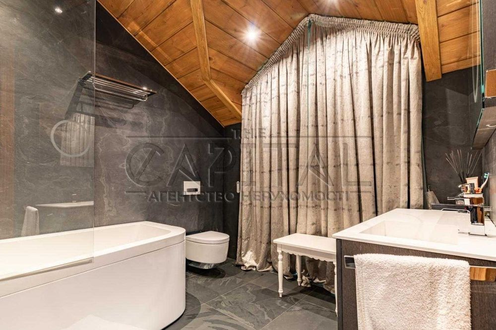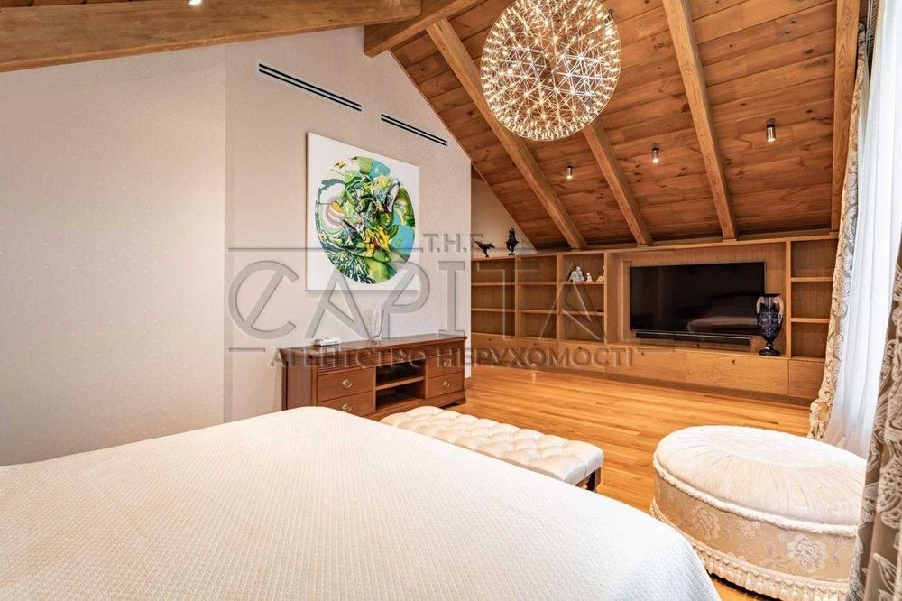 Аренда дома с укрытием и баней, Хотяновка. Оренда будинку з укриттям та лазнею, Хотянівка. Перша здача будинку в оренду Пропонується унікальний будинок у котеджному містечку «Бобри», який розташований у Вишгородському напрямку, Хотянівка. Будинок зведений на ділянці площею 25 соток з виходом до води, у межах огородженої заповідної зони, де мешкають підгодовані олені. Загальна площа будинку складає 800 м2, включаючи підземні приміщення та комори. Житлова площа становить 350 м2 + власна простора тераса. Будинок мебльований виробами від кращих італійських виробників, а всі матеріали належать до найвищої категорії якості. Для забезпечення максимального комфорту в будинку встановлено систему припливно-витяжної вентиляції з можливістю дистанційного регулювання температури. На території будинку розташована окремо стояча лазня, яка є справжньою зоною відпочинку. Вона включає сольову кімнату, купальню та велику вітальню зі смарт-телевізором, що створює ідеальні умови для відпочинку. Планування: - п'ять окремих спалень, кожна з яких має свій власний санвузол та гардеробну кімнату - кухня + окрема професійна кухня для персоналу - укриття (бункер) - професійна пральня - власний спортзал Котеджне містечко «Бобри» пропонує своїм мешканцям розвинену інфраструктуру: на території є православний храм, футбольне поле, а також цілодобово працює охорона та відеоспостереження. Керуюча компанія дбає про комфорт та безпеку мешканців, забезпечуючи високий рівень обслуговування. Запрошуємо на перегляд. #A7641