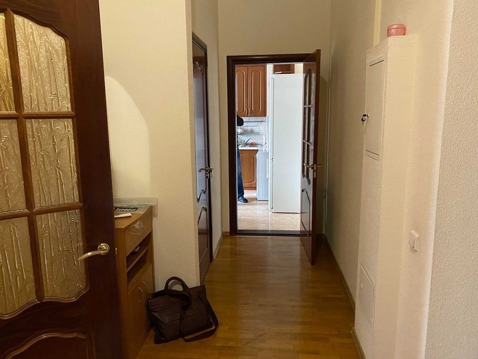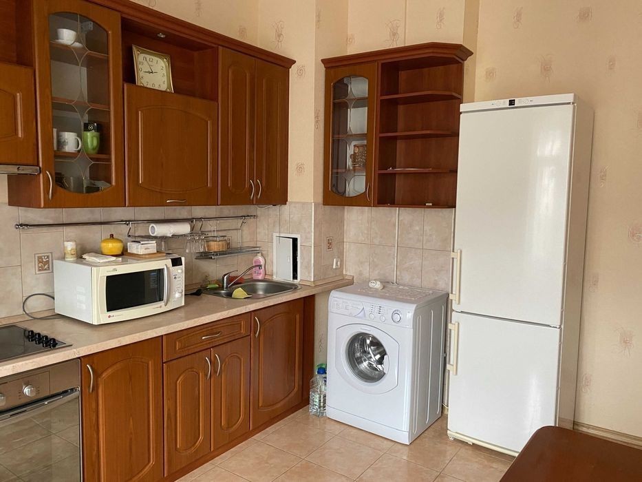 Оренда однокімнатної квартири Дмитрівська 69, 7 поверх 9 поверхового цегляного будинку бізнес-класу, загальна 54.1, житлова 23.2, кухня 11.4, веранда 6. у квартирі ремонт, меблі, побутова техніка. Розташована неподалік метро Лук'янівка пішки 10 хвилин. Гарна, розвинена інфраструктура.