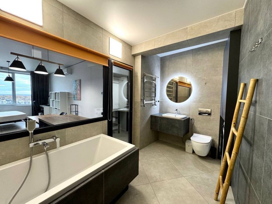 Проспект Червоної Калини 1 кімнатна квартира-студія з ДИЗАЙНЕРСЬКИМ РЕМОНТОМ в НОВОБУДОВІ Ціна: 14 500 грн/+ КП Поверх: 16/16 Площа: 30м. кв. В квартирі наявні необхідні меблі: ліжко, диван, шафа, РОБОЧЕ МІСЦЕ, Стелаж. Побутова техніка: пральна машина, холодильник, електрична варильна поверхня, витяжка, мікрохвильова піч, КОНДИЦІОНЕР, домофон Індивідуальне опалення ( підігрів підлоги по всій квартирі) Санвузол (Ванна з панорамним вікном та душ) Квартира тільки для однієї особи поруч Верхній Шувар, салон краси, спортзал Олімп, заклади харчування, аптека, магазини, кав'ярні, зупинка громадського транспорту. Катерина АН Hygge