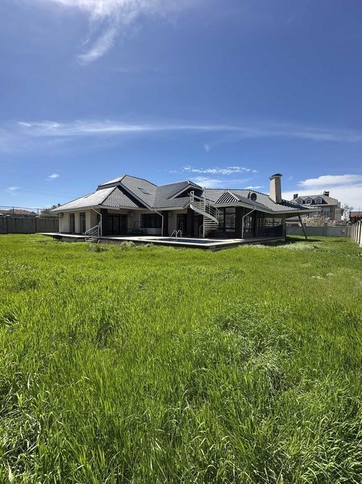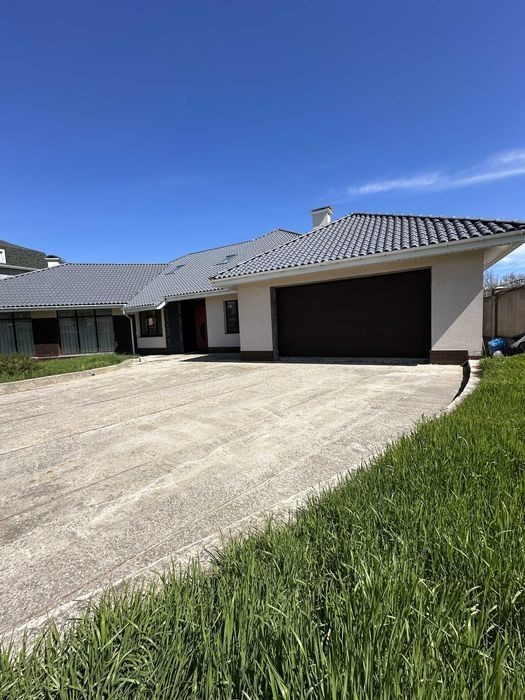 Современный одноэтажный дом в закрытом охраняемом кооперативе возле моря. В доме расположены 4 спальни, гостиная с камином, 3 санузла. Зимний сад, терраса. Участок 14 соток. Гараж на 2 авто.