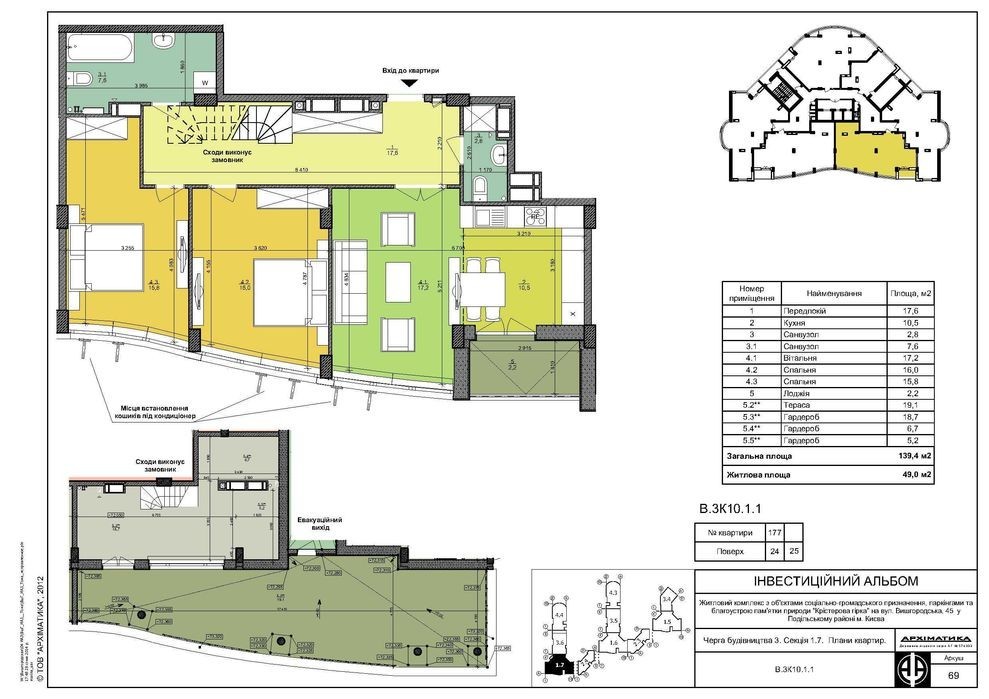 Можна зі впевненістю заявити, що цей житловий комплекс ідеально підійде абсолютно усім. По-перше, на зовнішній стороні багатоповерхівок відразу були заплановані приміщення під комерційні об'єкти. Вже зараз мешканці можуть розважити себе походом в кав'ярню чи ресторан, купити необхідні господарчі, харчові продукти та ліки тощо. Крім того, поблизу знаходяться популярні супермаркети - «Фора», «АТБ», «Varus», «Велика кишеня». Всього 15 хвилин пішки - і ви вже поряд з дитячими садками № ********** та центрами дошкільного розвитку №234 «Вогник», №321 «Квіточка». Доросліша дитина зможе навчатись в одній із міських шкіл, розташованих поряд - № ********** тощо. Прихильники спортивного відпочинку також не залишаються без улюбленого дозвілля. На території комплексу є тенісний корт, поле для гри у волейбол, баскетбол та баскетбол, воркаут-майданчики з сучасними тренажерами. Взимку є можливість займатись в одному с фітнес-центрів. Квартира розташована в 13 секції, на 24 поверсі Загальна площа: 139,50 кв. м. Житлова площа: 48,70 кв. м. Кухня: 10,50 кв. м. Гардеробна: 30, 80 кв. м. Сприятлива атмосфера, як в самій оселі, так і навкруги робить житловий комплекс затишним місцем для спокійного життя, свого роду оазисом серед шумного мегаполісу. Власна квартира у ЖК Паркове Місто (Київ) стане тим місцем, куди хочеться повертатися після напруженого робочого дня, де кожен квадратний метр спроектований з думкою про людей. Продаж від КП "ФІНАНСОВА КОМПАНІЯ "ЖИТЛО-ІНВЕСТ". вул. Володимирська, 42, кім **********