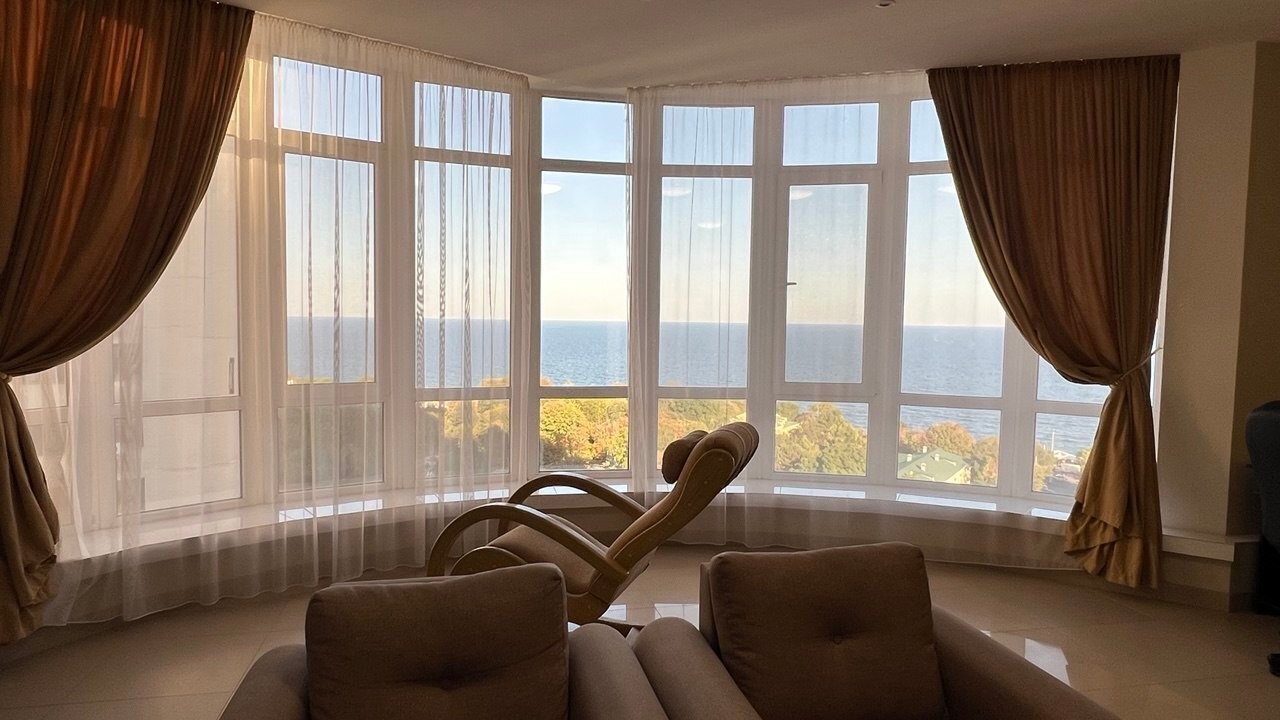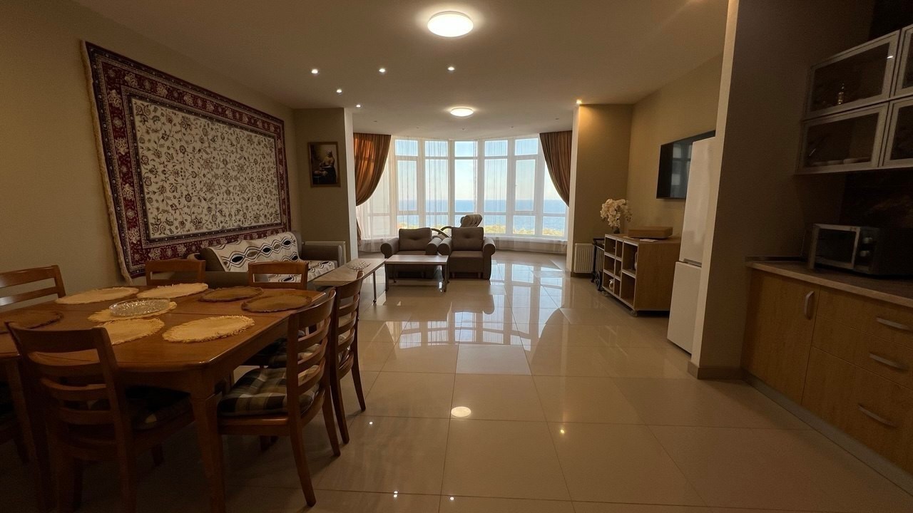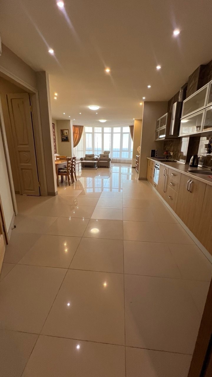 Просторная и комфортная квартира с прямой панорамой моря в Аркадии Формат планировки: просторная кухня-гостиная с панорамой моря и 3 отдельные спальни Есть 3 санузла и 2 гардеробные, свой сейф, прихожая Закрытый охраняемый двор с видеонаблюдением, детской площадкой, фонтаном во дворе. В доме есть генератор В шаговой доступности море и пляжи, Аркадийская аллея, аквапарк, кафе, рестораны, кинотеатр мультиплекс, фитнесс-клуб, супермаркеты и Торговые центры Можно арендовать длительно, с летом