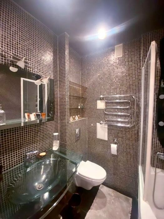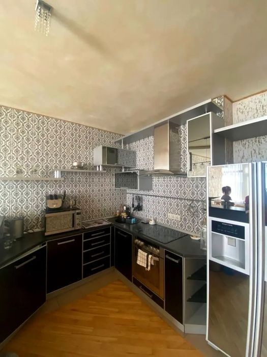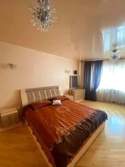 Обладнана та укомплектована всім необхідним для життя. 16 поверх. Новий 25-ти поверховий будинок. За адресою бульвар Верховної Ради 14-Б. Квартира виконана у бежевих тонах, паркет з натурального дерева, на стінах - венеціанська шпаклівка ручної роботи. У квартирі є все потрібне для життя. -У коридорі знаходиться комора передбачена для взуття (взуттєва шафа), також є велика вбиральня, яка вміщає всі ваші речі. -У санвузлі вся сантехніка найвищої якості, прозорий скляний умивальник, бойлер, велика ванна, в якій є багатофункціональний душ, є рушникосушарка та полички для вашої косметики та парфумерії. -У спальній кімнаті стоїть велике 2-х спальне ліжко з дорогим ортопедичним матрацом після якого ви не захочете вставати з ліжка, стоїть телевізор самсунг, і мультимедійна система (домашній кінотеатор), є шафа та комод із дзеркалом для речей, кондиціонер. -Кухня- родзинка цієї квартири, побутова техніка преміум класу, столовий обідній столик, дводверний холодильник з диспенсером для води та льоду, барна стійка з підсвічуванням, ніші для вина, мікрохвильова піч, духовка, витяжка, духовка, варильна поверхня з гравіюванням розкладається. Є посилання на відеоогляд