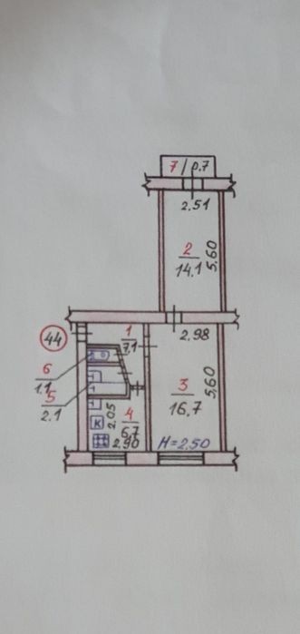 - 44 м²