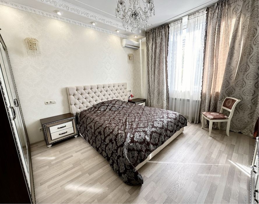 Продається 3-кімн. квартира без %, від власника по вулиці Хоткевича Гната, 8. Другий найбезпечніший поверх. Високі стелі 3 м. Обслуговується ОСББ, консʼєрж на першому поверсі. Чистий, охайний під'їзд і будинок. Квартира світла та затишна. Засклена лоджія в кухні. Є бойлери, та кондиціонери. Два санвузли. Усі три кімнати ізольовані, кухня також. Ремонт: авторський проект. Дорогі меблі та вся необхідна техніка. До метро три хвилини, поруч супермаркети, кавʼярні, Проспект, неподалік парк Кіото, парк Перемоги.