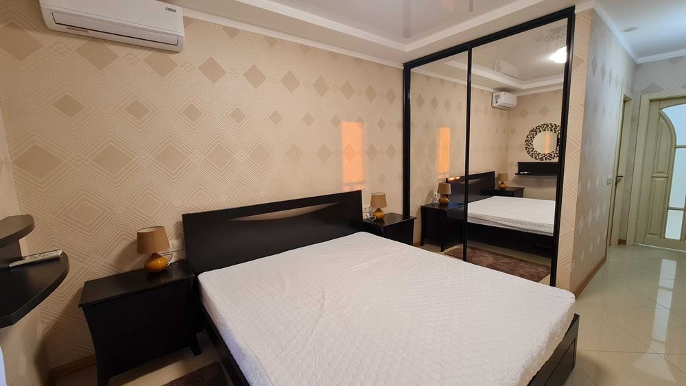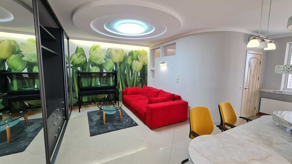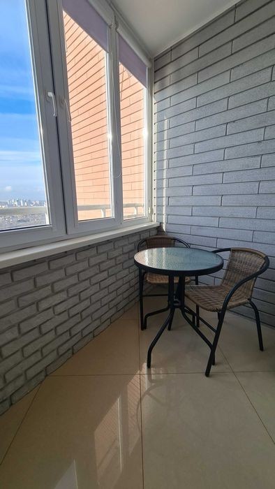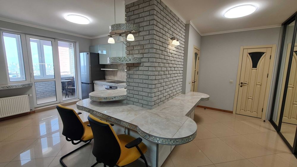 Оболонський р-н, вул. Героїв полку Азов, буд. 8. Простора квартира в сучасному будинку. Площа 78 кв. м. на 23-му поверсі. Має кухню-вітальню з виходом на балкон, кабінет (гостьова/дитяча), ізольована спальна кімната зі своєю ванною кімнатою та балконом, + гостьовий с/в. Повністю укомплектована меблями та технікою. У будинку консьєрж/охорона, закрита територія.