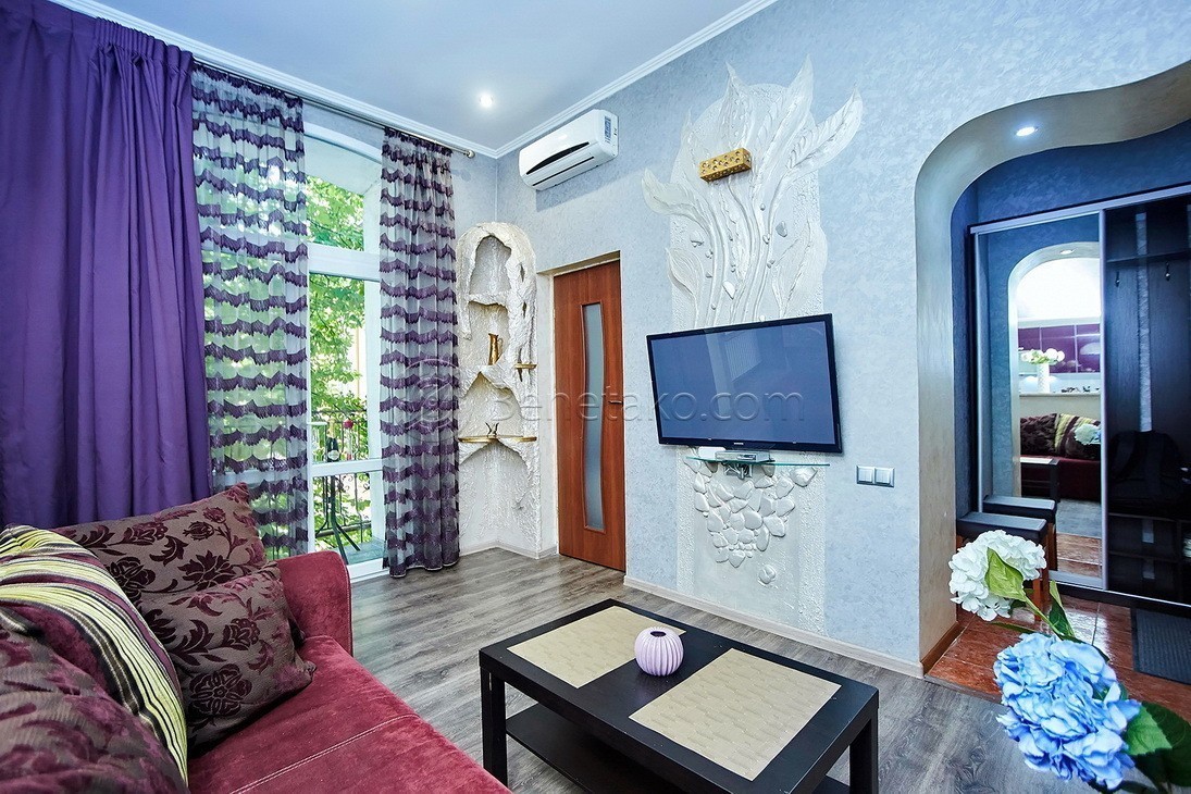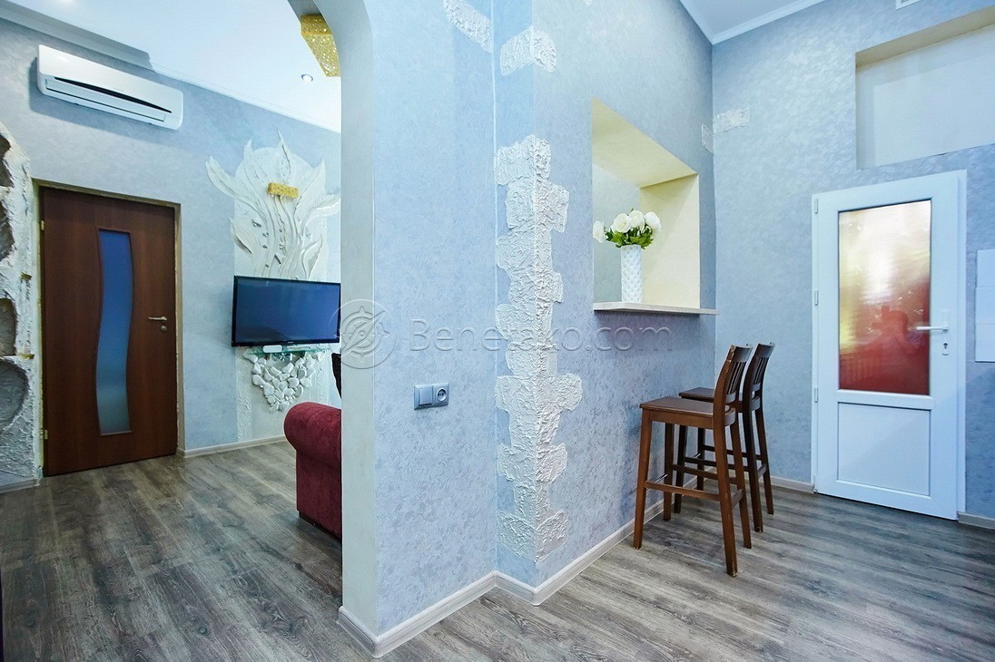 Код: 159. ПОМЕСЯЧНО АРЕНДА АКТУАЛЬНА В ПЕРИОД С 01.09 ДО 30.05 (в летний сезон сдается посуточно от 2-х суток, раннее бронирование от 5-и суток и более). Квартира с балконом и видом на город в центре Одессы, ул. Ланжероновская, 21, 2/2 эт. дома, общая площадь 50 кв. м. Необычный эксклюзивный ремонт, кухня-студия и спальня, (зона гостиной с раскладным диваном, спальня с кроватью) всего спальных мест - 4 (2+2), раздельный санузел с душем. Квартира оснащена всей необходимой мебелью и бытовой техникой: кондиционер, ТВ (кабельное), WI-FI интернет. Рядом Оперный театр, улица Дерибасовская, Приморский бульвар, «Морвокзал». Аренда от 1-го месяца и более. Стоимость может варьироваться в зависимости от срока аренды. Перед просмотром уточните наличие и детали по VIBER, WHATSAPP или TELEGRAM, указав «КОД» из объявления. КОМИССИЯ ЗА УСЛУГИ РИЭЛТОРА - 50% от месячной аренды (разовая оплата при оформлении договора).