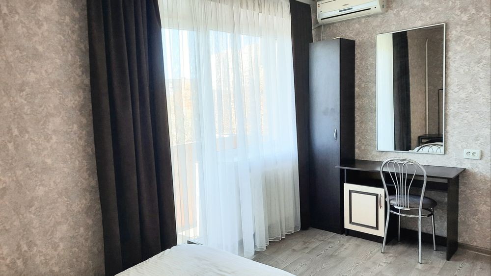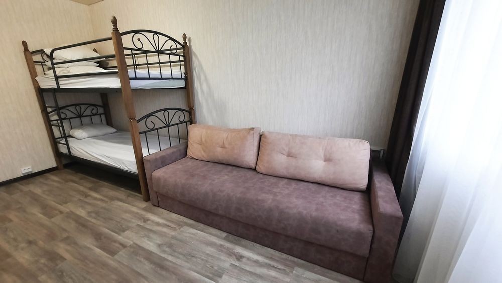Своя двухкомнатная, все необходимое есть. Горячая вода, микроволновка, стиральная машина, постельное полотенца. Wi Fi. Комнаты раздельные. Вмещаем до 6 человек.