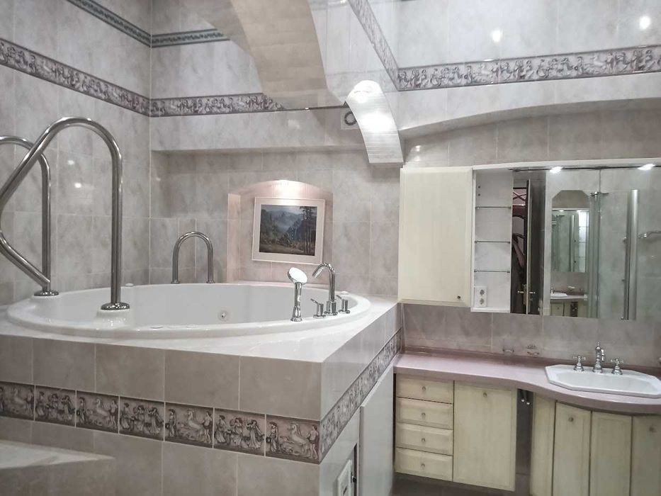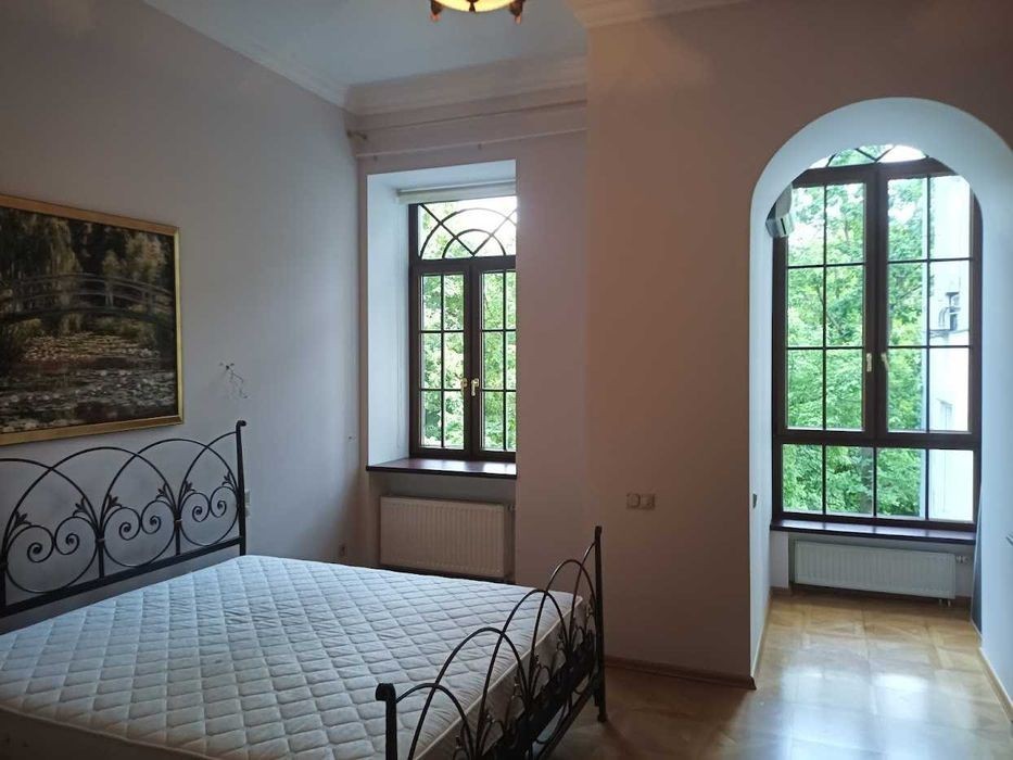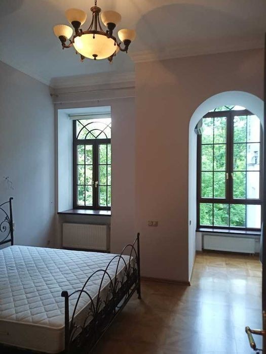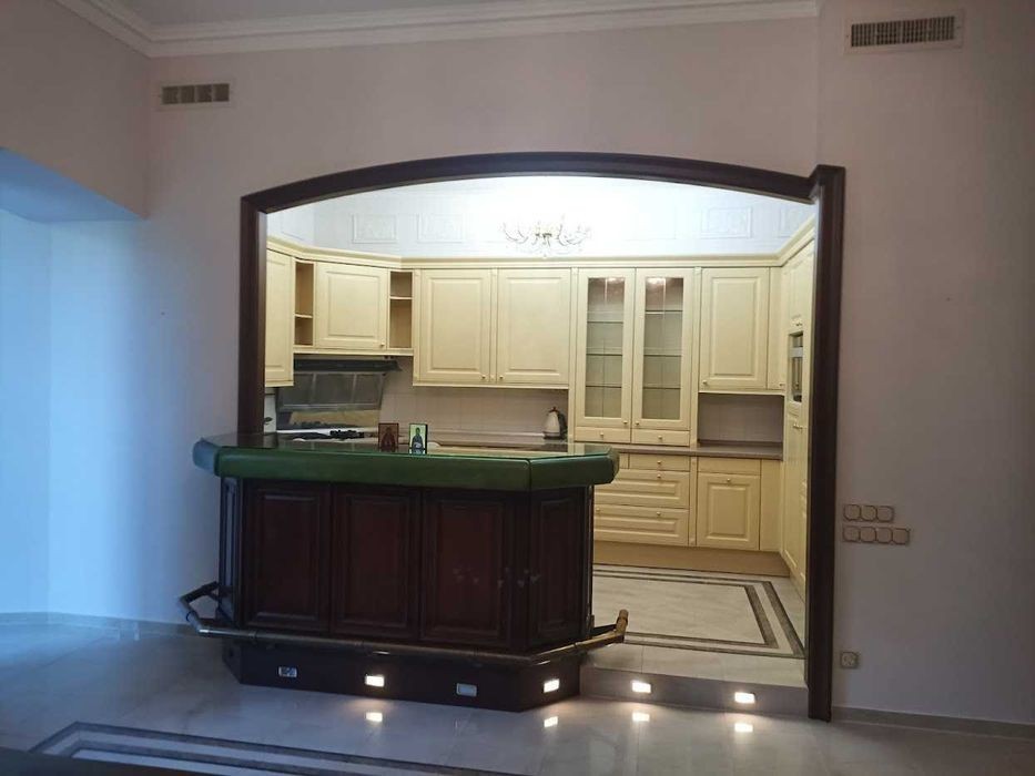 Богомольця 5 Центр Липки урядова квартал, будинок має статус пам'ятки архітектури, державна протекція, побудований 1914 році. В будинку ліфт. 3/5 пов. Н-4,3. Загальна пл. 236,4 м. кв., кухня-вітальня 54,7 м. кв., каміна зала з робочим каміном 32,5м. кв., домашній кінотеатр 26,4 м. кв., спальня -22,4 м. кв. +21,4м. кв. +15,7м. кв. +11,7м. кв., сан. вуз. + сауна 19,0м. кв., сан. вуз 8,6 м. кв. Квартира поділена на зони 1). кухня-вітальня+камінний зал, домашній кінотеатр, сан. вуз. 2). спальні кімнати, санвузол с сауною. Оздоблення та меблі; Двері виробництво Weimann Turelement, склопакети Schüco, Підлога паркет HARO. Кухня SieMatic, обладнання на кухні Miele, кахель V&B Villeroy Boch (ексклюзивна колекція чотири сезони). Меблі та домашній кінотеатр виробництво Італія. Джакузі Hoesch- fit sein technik info fur whirlpool. Сауна -HONKA. В квартирі автономне опалення, свій газовий котел. Закритий двір, одне парко місце. Поряд Меморіальний парк академіка О. О. Богомольця, Парк "Міський сад", Маріїнський парк, Хрещатий парк, Парк Володимирська Гірка. 5хв. Кловський ліцей № 77.