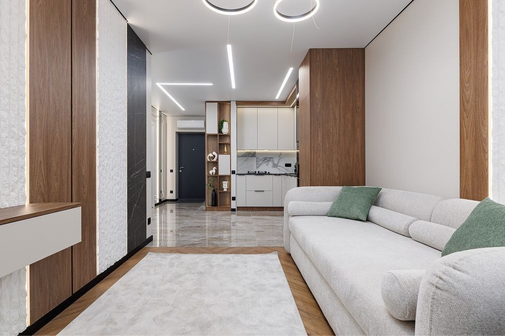 ЖК Avalon Zelena Street Квартира з сучасним ремонтом, меблями і поб. технікою. Простора кухня -студіо, обідній стіл з стільцями, розкладний диван, зона ТВ, шафа в коридорі, спальна кімната з двохспальним ліжком, гардеробом, туалетним столиком, ванна кімната з пральною машиною, шафки для зберігання речей. Будинок зданий і заселений. Поруч в ЖК багато різної комерції магазинів, тощо.