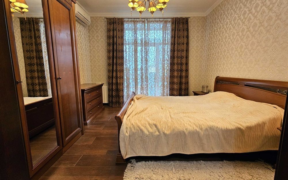 Вул. Білоруська, 5 Сталінка. Н = 3м. Красива 3-стороння квартира. Багато вікон, багато світла! 3/5пов. Загальна площа ~80 кв. м. Планування: - кухня-вітальня, - 2 повноцінні спальні, - просторий с/вузол, - засклений балкон. Якісний сучасний ремонт у спокійному класичному стилі! Великі красиві дерев'яні двері, якісні дерев'яні меблі та вбудована кухня. Вся потрібна побутова техніка! Тепла підлога по всій квартирі. Бойлер на 100 літрів. Посудомийна машина. Система очищення води. Газ. Дуже світла затишна квартира!