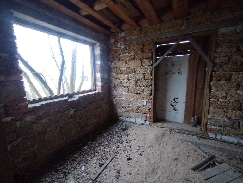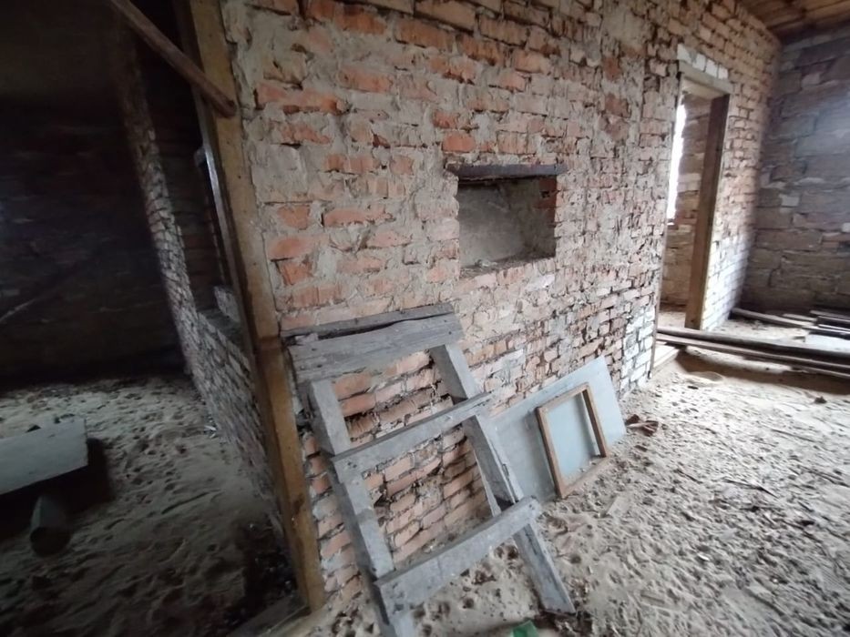 Продам Недобудований будинок, 100м2, коробка, цегляний, перший поверх перегородки, зроблена гарна піч, чорнова стяжка пола. 24 сотки землі під забудову. До будинка підведений газ. Поряд Ліс. Ціна 14000дол. Без Комісії для Покупця