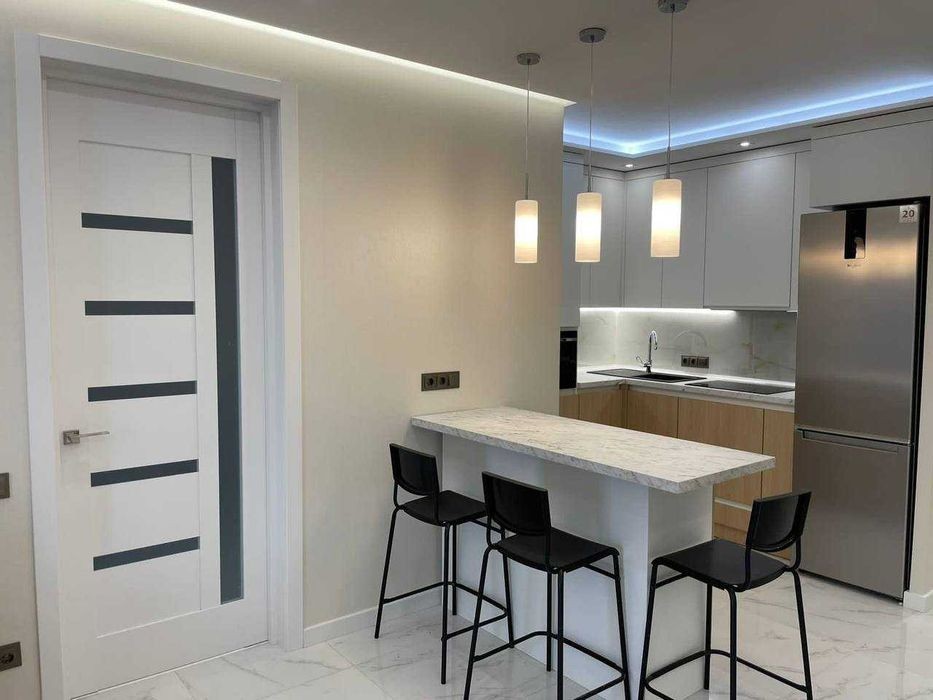 Голосіївський район, проспект Лобановського 144, ЖК Брістоль. Поруч метро Деміївська Либідська до 15хв пішки. ГЕНЕРАТОР на ліфти, воду та тепло. Новобудова! поверх 23\25ти, загальна площа 55м2, кухня студіо з двоспальним диваном та окремо спальня з двоспальним ліжком. Дві шафи купе, є вся необхідна техніка - посудомийка, смарт ТВ, кондиціонер, бойлер, правльна машина. Ціна 26000грн