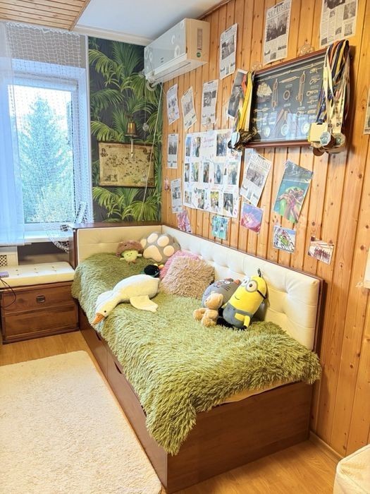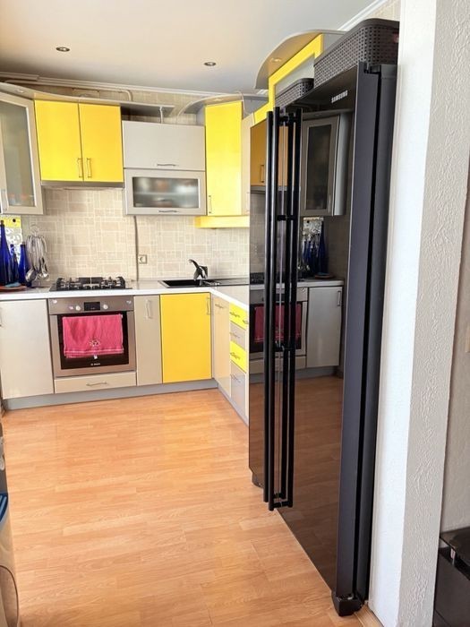 4 кімнатна холова чешка, 96 кв. м, відкритий балкон-тераса, пральня, колонка, не бойлер, тож економія електроенергії. Кондиціонери. Опалення центральне, але підʼїзд найближчий на вході опалення у будинок від котельні, взимку дуже тепло. Техніка і меблі залишаються практично всі. Район бомбічний, поруч парк з озером. Є паркомісце, місце для зберігання велосипедів Двір облаштований новою бруківкою, клумби, дитячий майданчик дуже великий. Дитячі садочки і школи неподалік. Поруч Нива, Хліб-сіль, ринок, поштомати. Транспортне сполучення дуже зручне. В той же час, це друга лінія, дуже тихо в зелено