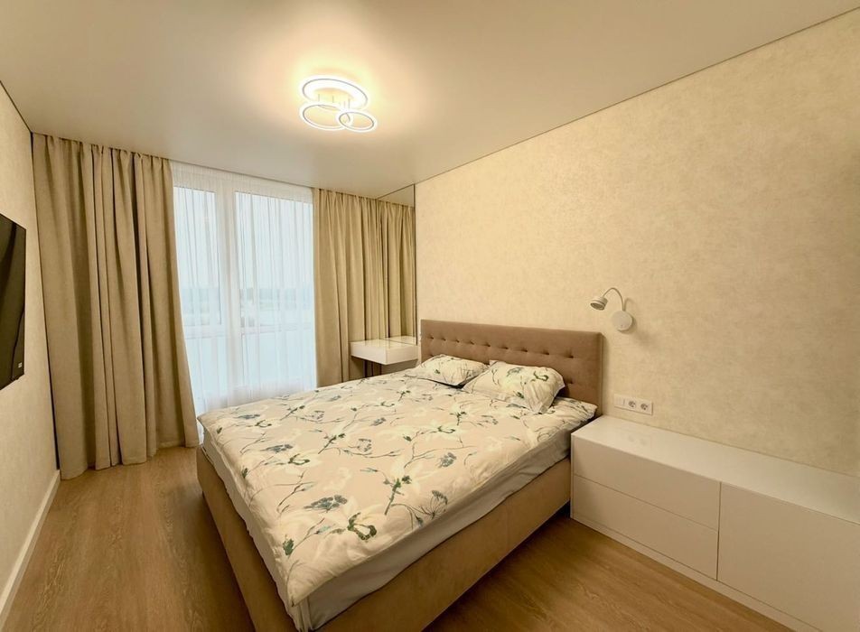 Перша здача квартири в ЖК Грейт, Дніпровська набережна, 15к Видова на Дніпро Стильна світла квартира з дизайнерським ремонтом, на 16 поверсі 25 поверхового будинку. Кухня - вітальня, окрема спальня, вбиральня. Всі необхідні меблі, техніка (кондиціонер, посудомийна машина, мікрохвильова піч, телевізор, духова шафа, варильна поверхня, пральна машина, бойлер), підлога з підігрівом. Будинок розташований на 1 лінії, тому з вікон не чути шуму за рахунок 16 поверху. Поруч ТРЦ «Рівер мол», «Новус», «Епіцентр», «Велмарт», «Сільпо». ЖК розташований на березі Дніпра (є сучасний парк та пляж, дитячі майданчики, яхт клуб), поруч з Дарницьким мостом. На території комплексу передбачено все необхідне для комфортного життя: дитячий садок, діловий центр, затишні кафе та безліч об'єктів соціальної та побутової інфраструктури. Дзвоніть у будь-який час!