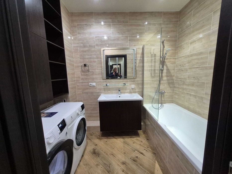Солом'янка, вул. Солом'янська, 20в. Пропонується в довгострокову оренду двокімнатна квартира загальною площею 52 кв. м. на четвертому поверсі 25-ти поверхового сучасного будинку. «Зелений» район з розвиненою інфраструктурою, до центру міста 15 хвилин. Кімнати та санвузол роздільні, є велика гардеробна. Квартира повністю мебльована, зроблений свіжий сучасний ремонт. Квартира обладнана пральною машиною, сушаркою, посудомийкою, кондиціонерами та іншою технікою. Без комісійних для орендаря. Ціна - 25000 грн. на місяць + комуналка.