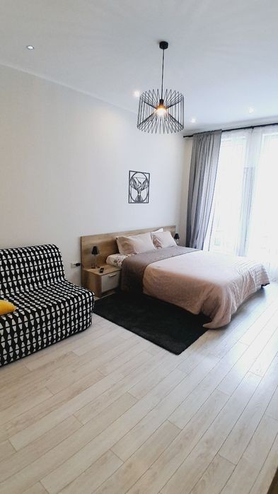 Квартира студія ( є два варіанти студій) має двоспане ліжко. Повний комплект для проживання. Посуд, пральна машина, фен, інтернет, Smart TV, Youtube, автономне опалення кліматконтроль 22 градуси. Гарна постіль гарний матрац і подушки. Ціна від 10 днів, меньша кількість днів ціна більша. В наявності є однокімнатні квартири різні. Святкові дні - уточнюйте ціну. Телефонуйте.
