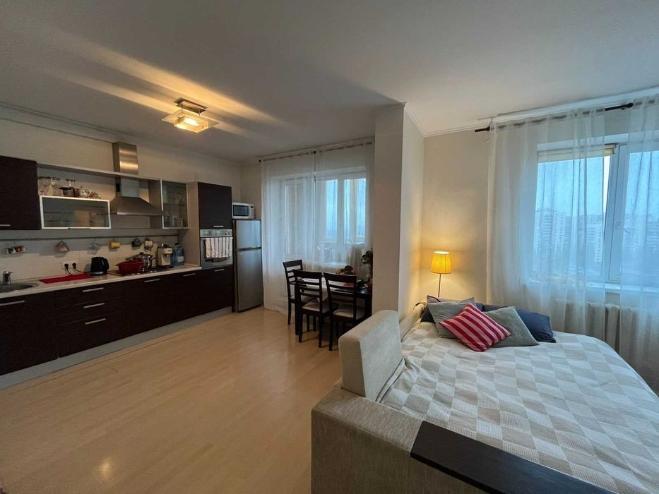 Здам довгостроково! Фото відповідають! Вільна з 27 листопада, перегляди за домовленістю. Проспект Леся Курбаса, 7а. Красива студія з усім необхідним для комфортного проживання, вихід на балкон з кухні, велика гардеробна. Дуже тепла, конс'єрж, багато зручного транспорту, чудова інфраструктура. Приймаємо з кішечкою або маленьким песиком. Більше інформації за телефоном. Додатковий зв'язок Вайбер, Телеграм. 16500грн. + к. п. + застава комісія ріелтора