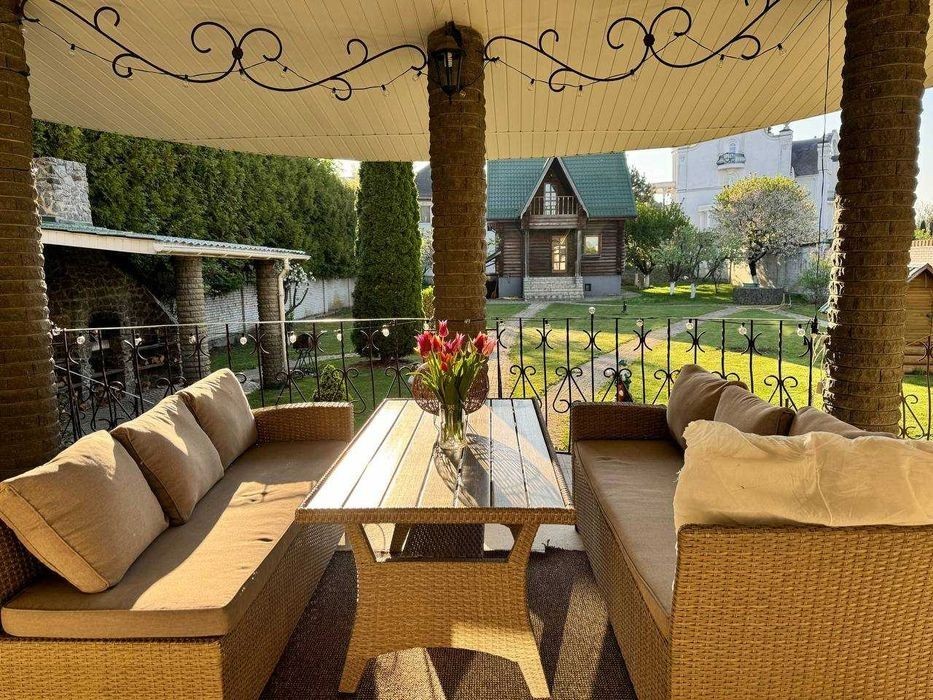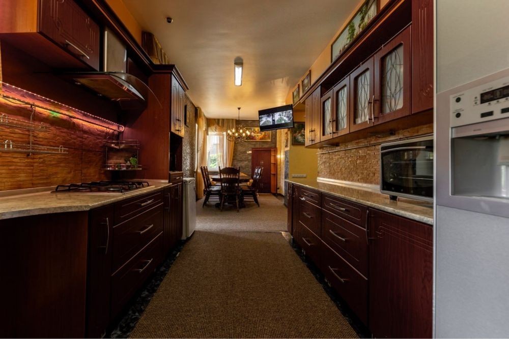Пропонується на продаж заміський будинок в Гатному (поруч Чабани, Крюківщина), 230 кв. м повністю готовий, з ремонтом, меблями та технікою. Ділянка: 16 соток Площа: 230м2 Планування : 1 поверх: передпокій з шафою купе, кухня з виходом на простору терасу, гостьова спальня, санвузол. 2 поверх: майстер спальня зі своїм с\у, 2 окремі спальні, окремий с\у. На території розташована будівля з сауною, більярдною та зоною відпочинку. Поруч зона барбекю. Будинок побудований з: - фундамент стрічковий, цегла, армований - газоблок 300 мм, утеплений пінопластом 100 мм і фанерований баранцем, - дах - металочерепиця, утеплена мінватою 200 мм, гідробар'єр, паробар'єр. - Енергозберігаючі вікна «Veka» softline 70 п'ятикамерний профіль двокамерний склопакет, теплий підставний профіль. У будинок заведено 3 фазний струм. Своя свердловина 38 метрів із глибинним насосом. Каналізація - септик. Встановлено газовий котел, бойлер на 80л. У будинку всі меблі на замовлення - обладнані фурнітурою - blum, техніка від відомих світових виробників - Electrolux, franke. Плитка тротуарна по периметру будинку. Ділянка повністю озеленена. Закрита територія, відеоспостереження вулицею. Асфальтований під'їзд, бордюри на вулиці. Ціна продажу - 300 000 дол. БЕЗ КОМІСІЇ!
