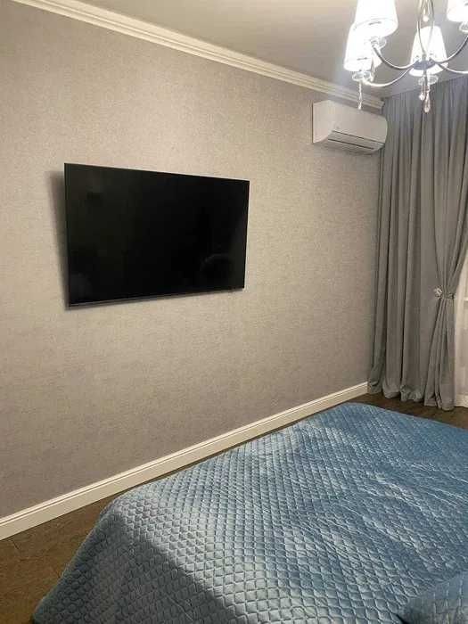 код 17737 Продаю квартиру. 86 кВ. Кухня-студія, дві спальні, гардеробна кімната. Всі меблі, техніка- нові. Посуд, очищувач повітря, кондиціонери, телевізори. Монолітно- каркасний надійний будинок, з бомбосховищем. Шкіряний новий диван, дорогий ремонт. Кухня в класичному стілі з натураноного дубу. Стільці з дубу. Вбудовані шафи, у ванній кімнаті вбудований величезний шкаф, де сховані пральна машина та багато місця для зберігання всіх необхідних речей. Великий балкон ( видовий) з барною стійкою та стільцями. Все нове. Новий посуд, постільна білизна. То що. Не встигли перевезти всі речі. Підлога - натуральний дуб, плитка італійська. Бойлер. Супутникове ТВ, WIFI, все підключено. Сигнализіція на квартиру. Вже підключена і працює. Гардеробна кімната ( близько 7 кв. м. ) Два балкони. З опаленням. Один можна використовувати як кабінет. У квартирі ніхто не прописан.