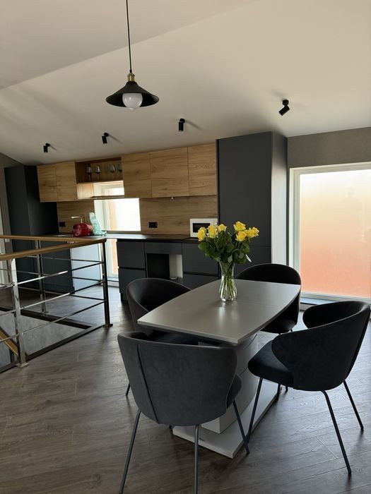 Сучасна квартира в новому будинку. Дві окремі кімнати, великий хол, гардеробна 6 кв. м. Залишається все: меблі, техніка, люстри, штори. В підʼїзді всього три квартири. Є сховище.