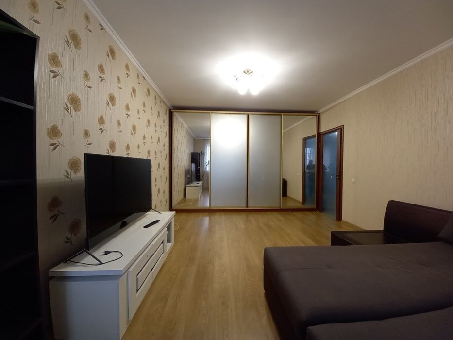 Київська обл. м. Буча, Богдана Хмельницького 6, 56/22/18,. Здам у довгострокову оренду, 1 к. кв., для сім'ї, Індивідуальне електро опалення, кухня вбудована, холодильник, барна стійка, на стінах в кухні та коридорі вениціанка, Кімната: великий кутовий диван, велика шафа купе, Плазма, тумба під телевізор, комод, Коридор: розкладний диван, етажерка. Ванна кімната сумісна: пральна машина, бойлер 100 літрів. Оренда з 17.11.25 Без тварин. Тільки для працюючої сімейної пари Оплата перший-останній і 50%