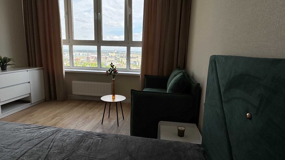 Повністю мебльована 1 кімнатна квартира біля метро на вул. Краківська, 27, поверх 20. Нещодавно після ремонту. Ліжко з ортопедичним матрацом та місцем для зберігання під ліжком. Зона з мяким диваном біля вікна з виглядом на весь Київ та захід сонця, вихід в тихий двір. Обладнане робоче місце і місткий комод для зберігання речей. Окрема велика гардеробна з полицями та вішаками. Кухня обладнана всією новою та якісною технікою: духовою шафою, варильнею поверхнею, мікрохвильовкою, посудомийкою, холодильником та блендером. Стильний та зручний стіл з 4ма мякими стільцями. Є балкон, який можна обладнати для відпочинку. В кожній кімнаті кондиціонер. У ванній є бойлер та пральна машина. Ванна, що значно зручніше та комфортніше за душову. Автономне живлення ліфтів та води. При відключеннях світла - працюють ліфти та є вода. Консьєрж, відеоспостереження, домофон, ОСББ. Поруч метро Чернігівська, Нова Пошта, Novus, ТЦ Проспект, Ашан, ПриватБанк.