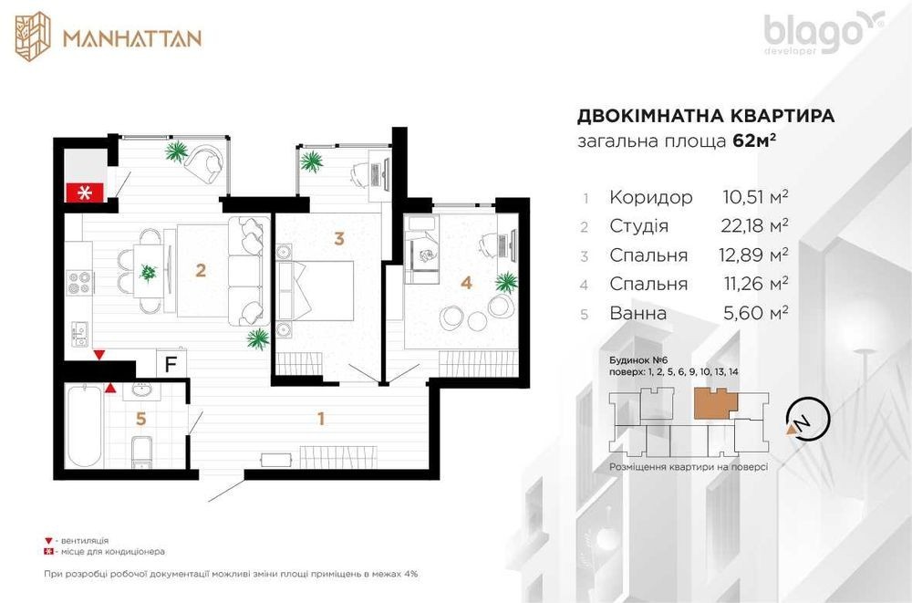 Пропоную зданий 2 кімнатний сирець в ЖК Manhattan П'ять хвилин до міського озера, вулиця Ленкавського Діє договір переуступки! Технічні характеристики: - площа 64 м² - поверх 14/16 - кухня студія 23 м² - панорамні вікна з виглядом на озеро ЖК закритого типу з власною комерцією та підземним паркінгом Телефонуй