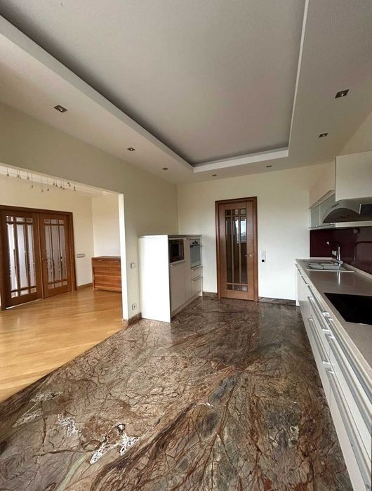 Продаю 6-ти кімнатну квартиру за адресою вул. Предславинська 31/11; загальна площа 261,7 кв. м, житлова 172,2 кв. м, 18-й поверх 25-и поверхового цегляного будинку. Квартира в гарному стані, мармурова підлога в передпокої та кухні, дубові двері та паркет у житлових кімнатах, якісна сантехніка. Спальня зі своїм санвузлом та гардеробною кімнатою, кабінет, велика вітальня, кухня-столова, дві дитячі кімнати з окремим санвузлом, гостьовий санвузол сумісний з побутовою кімнатою. Кухня з вбудованою технікою Bosh. Квартира тристороння, вікна виходять на Велику Васильківську, Е. Коновальця та на Олімпійський стадіон. У будинку своя котельня. Квартира вільна. Є можливість придбати паркувальне місце у підземному паркінгу.