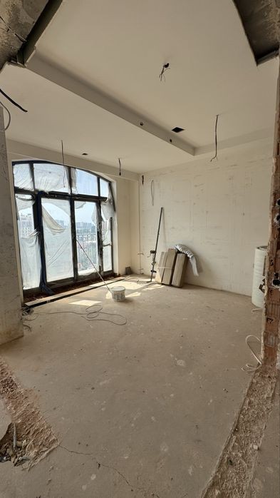 Двухспальневая квартира с боковым видом на море. Балкон по периметру всей квартиры. Панорамное остекление. СПС более 3 лет. Начали ремонт: провели электрику, сантехнику, кондиционирование. Закуплены кондиционеры и паркет на всю квартиру.