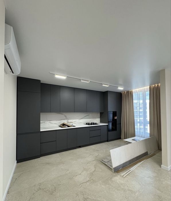 Продається 2к. в ЖК Фемелі Плаза. По факту простора кухня-вітальня та окрема спальня. З кухні є великий відкритий балкон. Присутня окрема гардеробна кімната. Підігрів підлоги по всій квартирі. Кондиціонер на обігрів та охолодження. Квартира буде доукомплектована столом та стільцями. Буде встановлений телевізор та дрібні деталі. Квартира одностороння та внутрішня. Документи.