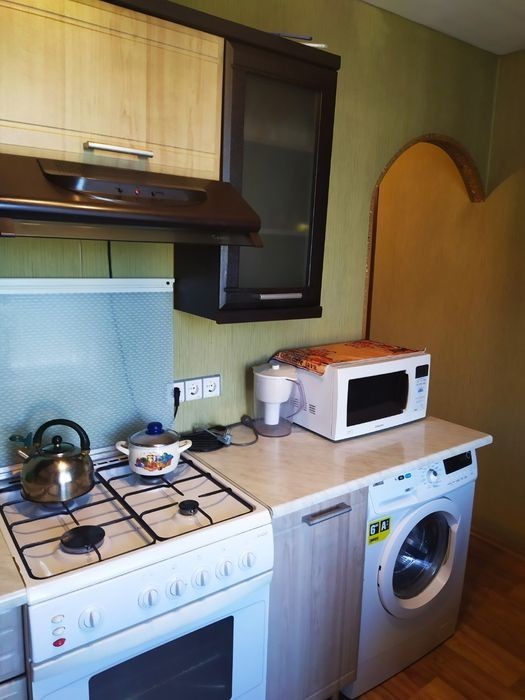 Квартира находится возле торгового центра Терра. Отличное месторасположение дома. Отопление есть и свет не отключают. Современная мебель, вся необходимая бытовая техника и посуда, для комфортного проживания! Балкон застеклён и утеплён МП. Оплата 4000+ком. услуги, предоплата. Услуга АН по факту съёма.