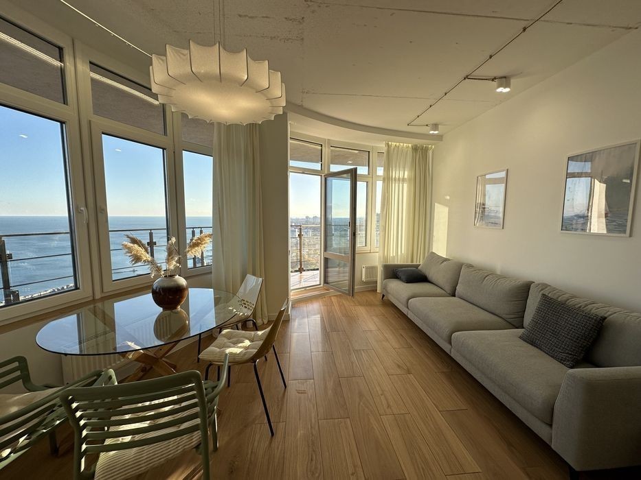 Жемчужный квартал на Каманина. Самая видовая квартира в комплексе. Дорогой дизайнерский ремонт. Теплые полы везде где плитка. Полная комплектация. Есть кладовая. Из каждой комнаты выход на огромную террасу. Шикарный вид на яхт-клуб и море. В доме подземный паркинг. Генератор.