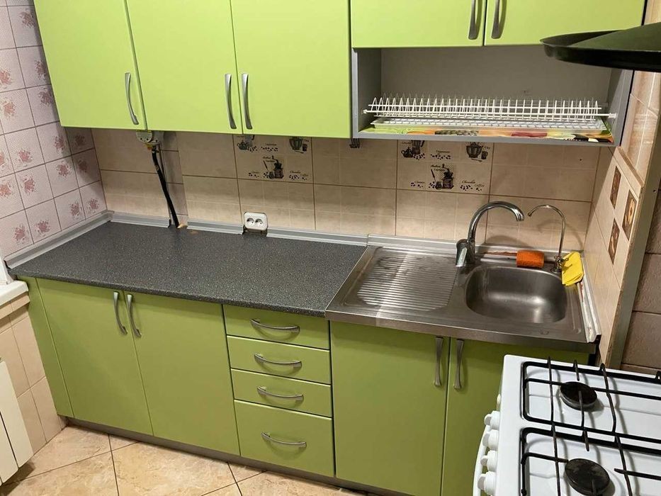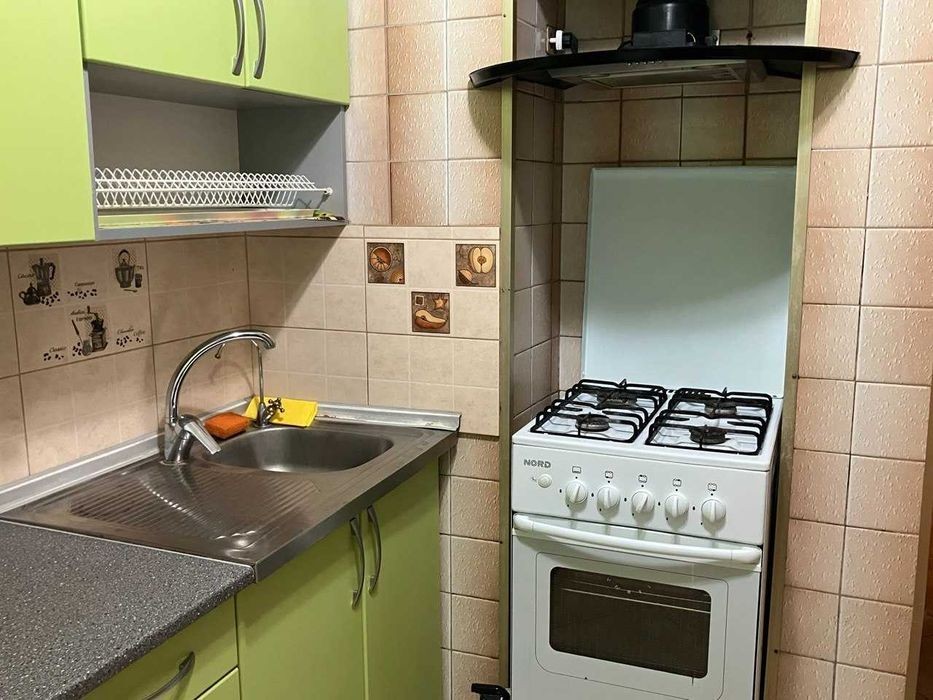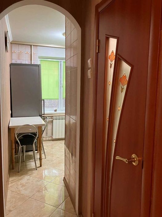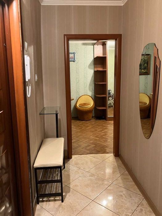 Лятошинського вул., 14а, 1/9-пов. будинку, 45/27/6 м2, затишна двокімнатна квартира в гарному стані, роздільні кімнати, велика засклена лоджія, склопакети, роздільний с/в, кахель на кухні та у с/в, встановлені єврорадіатори, зовнішнє утеплення, лічильники води, газу.е. ектроенергії. Дуже тепло взимку і прохолодно літом. Мебльована, дві шафи-купе, вбудовані кухонні меблі. Є вся побутова техніка - газова плита, холодильник, пральна машина, бойлер, кондиціонер. Розвинена інфраструктура - школа, дитячі садочки, багато різних магазинів, торгівельні центри, "Епіцентр", "Республіка", "Метро", зупинки транспорту, до метро - 10 хв. пішки або 2-3 зупинки транспортом. В пішій досяжності розташована мальовнича зона відпочинку з озерами.