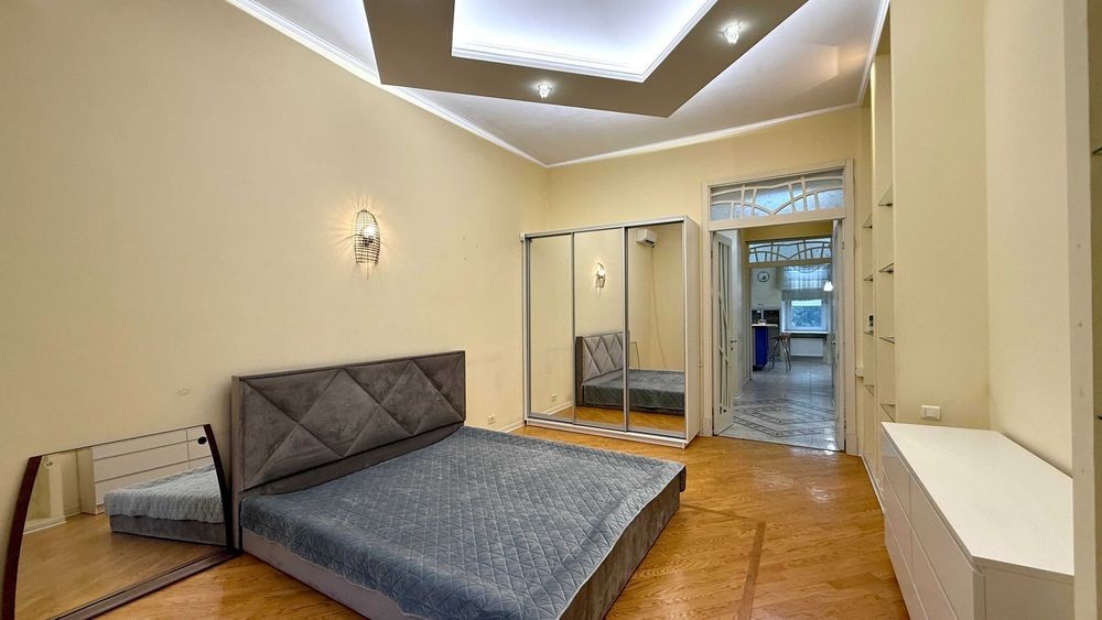 Предлагаю в аренду квартиру на 2 спальни, с кабинетом, гостиной, столовой с камином, 2-мя санузлами, гардеробной, отдельной кухней и с 2-мя балконами ЕСТЬ ВИДЕО • АКТУАЛЬНОЕ ОБЪЯВЛЕНИЕ Квартира сдаётся долгосрочно. Два паркоместа в закрытом дворе Можно с детьми и с питомцами Квартира общей площадью 198 м² в красивом доме на Французском бульваре, 11а. Приморский район, Одесса Дом реконструирован и находится в закрытом дворе. Парковка во дворе, ворота на пульте с заездом с Французского бульвара Квартира вживую выглядит лучше, чем на видео - интерьер светлый, тёплый и приятные фактуры. Высокие потолки и большие комнаты Окна из гостиной и спален - во двор, на южную сторону. Кухня и столовая - окна в переулок. Балконы тоже на две стороны •• Факты: - Общая площадь - 198 м²; - 2 спальни, кабинет, гостиная с балконом, столовая с камином и балконом, отдельная кухня; - 2 уборных - одна с душевой, вторая туалет и постирочная; - Отопление - газовое, автономное и газовая плита; - Резервный бак на 500 литров воды; - Третий этаж пятиэтажного дома; - Высокие потолки, большие комнаты, толстые стены; - Теплый паркетный пол; - Квартира отлично зонирована - спальни далеко друг от друга через большую гостиную; - Есть место для отдыха, работы из дома и для творчества; - Много места для хранения вещей; - Двор закрытый и есть 2 места для парковки. •• Где находится и что вокруг: Отрада - один из лучших районов для жизни в Одессе, на мой взгляд. Правильное место, престижное и атмосферное, где всё рядом и везде пешком Море здесь совсем рядом, несколько пляжных клубов, спортивные площадки, теннисные корты, футбольные поля и Трасса Здоровья Парк Шевченка, исторический центр и Ланжерон в 1,5-2х километрах Рестораны и кафе - Компот, Штрудель, Татар Бунар, Make My Cake в соседних кварталах •• Ключи на руках, показываю быстро. Квартира свободна. Приходите, смотрите и арендуйте Для просмотра звоните, пишите +38 (06*******11 На связи, ваш адекватный риелтор Святослав Трипольский