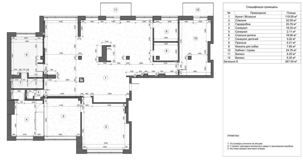 Продается двухсторонняя квартира общей площадью S = 267.55 м² в свободной планировке с дизайнерским проектом в подарок Расположена на 4-м этаже 10-ти этажного дома Планировка квартиры: - Кухня / Вітальня (Гостиная) 119.59 м² - Спальня 32.59 м² - Гардеробна (Гардеробная) 20.78 м² - Санвузол (Санузел) 18.35 м² - Санвузол (Санузел) 2.11 м² - Спальня дитяча (Детская спальня) 18.06 м² - Санвузол дитячий (Детский санузел) 5.02 м² - Пральня (Прачечная) 6.21 м² - Кімната для собак (Комната для собак) 7.65 м² - Кабінет / Ігрова (Кабинет / Игровая) 24.79 м² - Балкон 6.20 м² - Балкон 6.20 м² В квартире установлено 2 газовых котла Дом расположен по улице Содружества, рядом с жк Днепровская Брама и Днепровская Брама-2, а также улиц Семейная, Тепличная и 8-марта. Окна выходят на котеджный городок "Золотые Ключи" По всем вопросам отвечу по телефону (Кирилл)