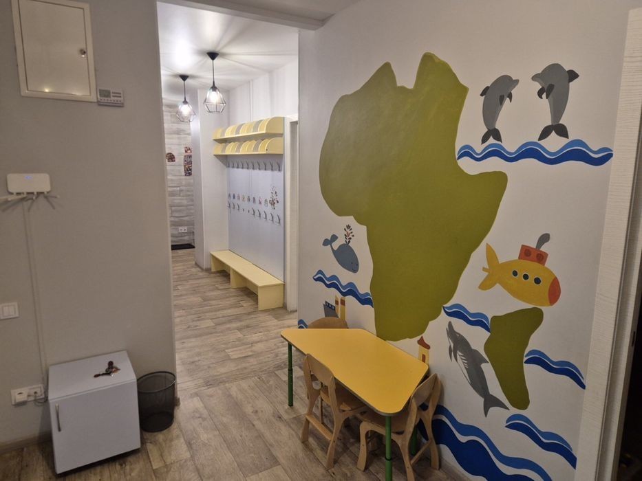 Клуб, приватна школа та сад, площа 125 м. Вул. Освіти, 16А 3 маленьких кімнати, велика зала, кухня, кабінет вихователів та санвузол. Садочок повністю обставлений меблями та іграшками. Розрахований 18-20 дітей. Комунальні влітку до 5000, в опалювальний сезон 8000. Канікули 1 місяць Ціна 2, 3, 4 місяць 40000 грн 5, 6, 7 - 50000 грн В подальшому - 60000 грн