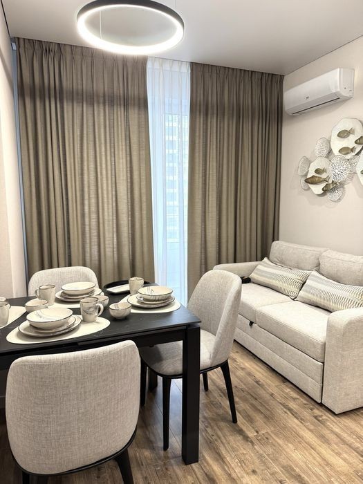 ПЕРВАЯ АРЕНДА! Есть видео! Полноценная 2-комнатная квартира в ЖК «Атмосфера», Аркадия. Курортный переулок 2 Аренда на круглый год - без повышения цены и без выселения на лето. Светлая, стильная и очень уютная квартира с продуманным комфортом. Планировка: • 2 отдельные спальни • Кухня-студия с выходом на балкон • 2 санузла • Много мест для хранения вещей • Новая мебель и вся необходимая техника • Двуспальные кровати в спальнях, раскладной диван на кухне • Посудомоечная машина • Стиральная и сушильная машины • Большой бойлер • Кофеварка, духовой шкаф, микроволновая печь • 3 кондиционера, 3 телевизора • Оптоволоконный интернет • Холодильник, утюг, пылесос, полный набор посуды • Система тёплый пол, фильтр для очистки воды • Шторы blackout • Счётчик на отопление Дом с генератором Подземный паркинг (есть также парковочные места в аренду) • Закрытая территория, круглосуточная охрана • Полная автономия комплекса • До моря и пляжа - 10 минут пешком На крыше - благоустроенная парковая зона с панорамным видом на город и море. Идеальное место для отдыха и вдохновляющих закатов. Ждём первых арендаторов, ценящих комфорт и безопасность. Риелтор.