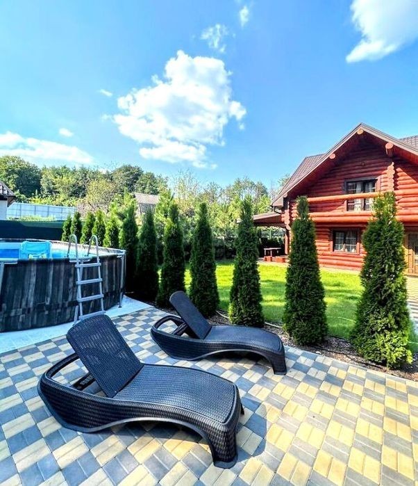 #210 Затишний котедж біля Голосіївського парку (м. Київ) Ідеальне місце для святкувань, відпочинку з друзями чи родиною! Котедж розташований у зеленій зоні поруч із Голосіївським парком - тиша, свіже повітря та комфорт сучасного заміського будинку. Вартість оренди Понеділок - четвер: 14 000 грн/доба (до 10 гостей) П'ятниця, неділя: 18 000 грн/доба (до 10 гостей) Субота: 20 000 грн/доба (до 10 гостей) При оренді від 2 діб - знижка 20% Опис будинку 2 поверхи, до 10 спальних місць 4 затишні спальні на другому поверсі. На першому поверсі: простора зала з каміном та великим телевізором Кухня-студія з усім необхідним Вітальня та ванна кімната Великий стіл для святкового банкету (до 20 гостей) Гардеробна Тераса з чудовим краєвидом та зоною відпочинку Територія та відпочинок Великий басейн (10×5 м) - працює з травня по жовтень Джакузі - 1000 грн/год ( не працює в зимку, джакузі працює з травня по листопад) Чан - 2000 грн/год (мінімум 2 години) Баня - (одна затопка 3 год) - 3000 грн Простора мангальна зона Доглянута територія з ландшафтним дизайном Додатково Є генератор (споживання 3-3.5 л/год) - можна заправляти та користуватися Зручна локація - поруч із центром Києва 2 окремі будинки на території, які не заважають одне одному