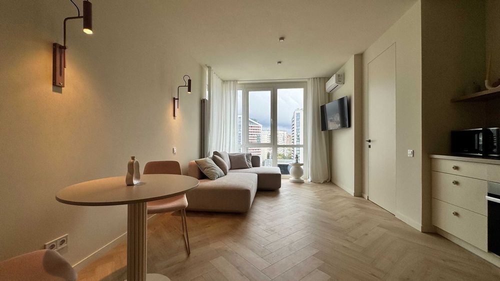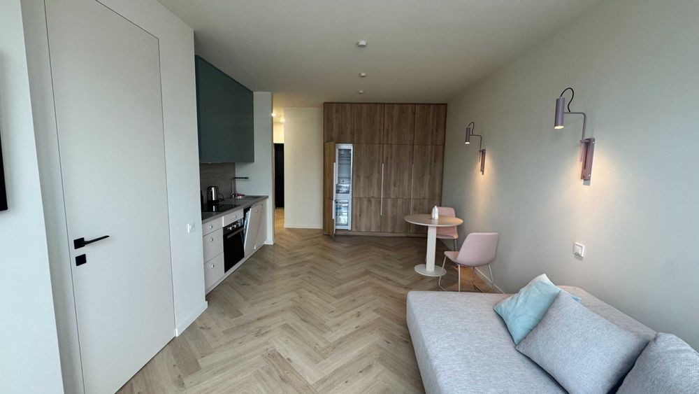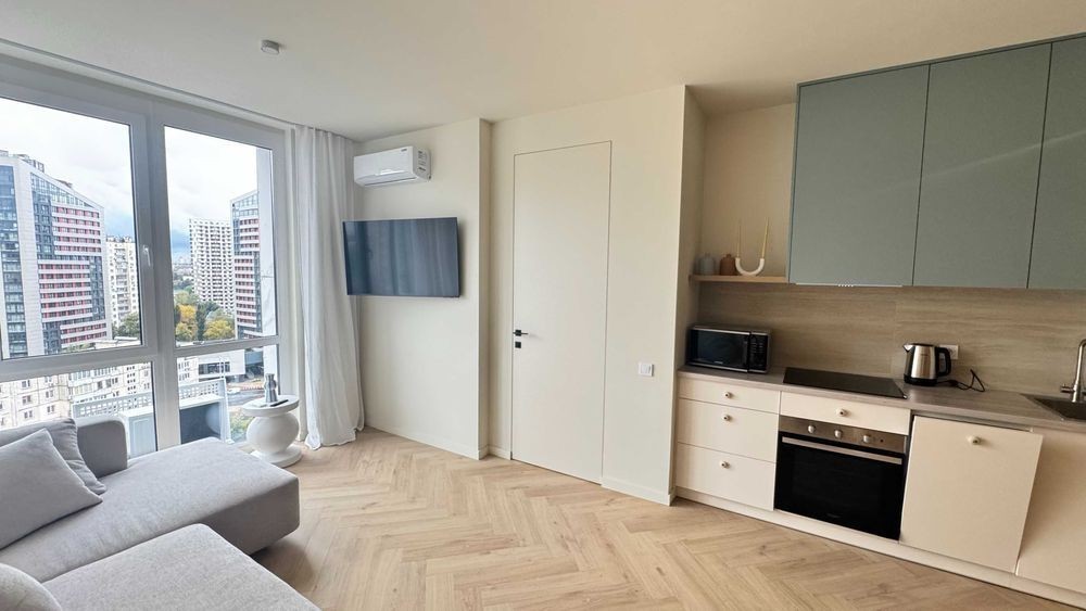 Здам однокімнатну квартиру в новому ЖК CITY HUB по вулиці Мокрій 8 б. В квартирі ніхто не жив, дизайнерський ремонт, все нове. Окрема спальня з гардеробною, двоспальне ліжко з ортопедичним матрацем, 2 кондиціонера, прально-сушильна машина, фільтри на воду, бойлер, варильна поверхня, духова шафа, витяжка, телевізор, піч СВЧ, пилосос, електрочайник, пдігрів підлоги у ванній кімнаті, посудомийна машина. Чудовий краєвид на місто, панормні вікна, ліфт спускається в паркінг-бомбосховище. Охорона території, власна котельня, лічильники на тепло та на воду. До метро Вокзальна 10 хвилин пішки. Поруч ТРЦ Ультрамарін з великим Сільпо та тренажерним залом. Для пари чи однієї людини без дітей та домашніх тварин. Комісія 50%.
