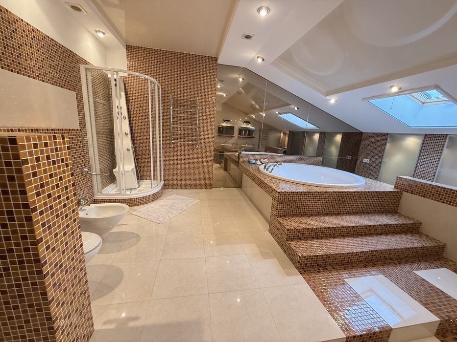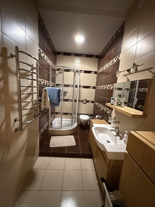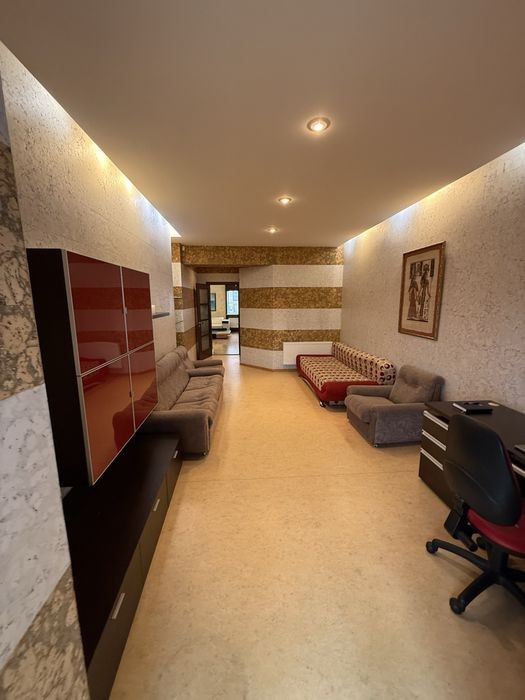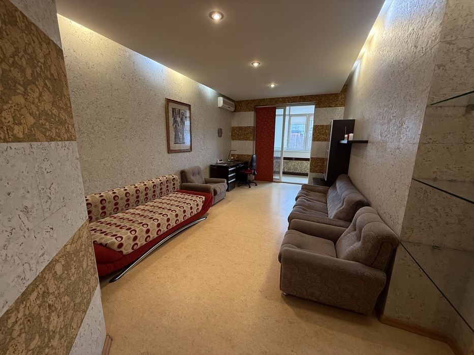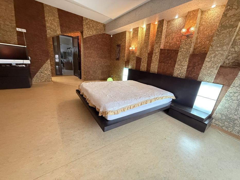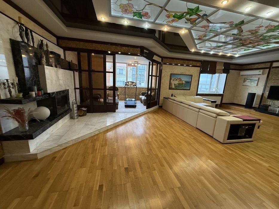 Аренда крупногабаритной 3-ки Сухой фонтан 5/6 этажного 220м2 2 спальни + каминный зал + 2 сан узла 2 гардеробные комнаты Автономное газовое отопление 5,5 кВт батарея и инвертор Теплый пол, кухня прихожая душевая ванная Балкон крытый Паркоместа Закрытый двор, консьерж, барбекю Своя скважина