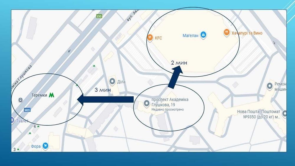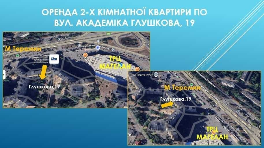 Теремки 1, вул. Академіка Глушкова, 19. 2-х кімнатна квартира загальною площею 52 м2, кімнати окремі, с/у окремий, велbка простора лоджія. Квартира у житловому стані. Поруч ТРЦ Магелан, ст. метро "Теремки" (пішки-3 хвилини). Ц. 11.000 грн/міс.
