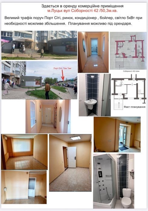 Здається в оренду приміщення в гарній локації район Там Там, Порт сіті по вул Соборності 42 Луцьк. Трафік покупців дуже великий ! Без комісії для орендаря. Кондиціонер. Санвузол. Бойлер. Від власника без комісії! Телефонуйте будь ласка на вайбер, телеграм, вотсап.