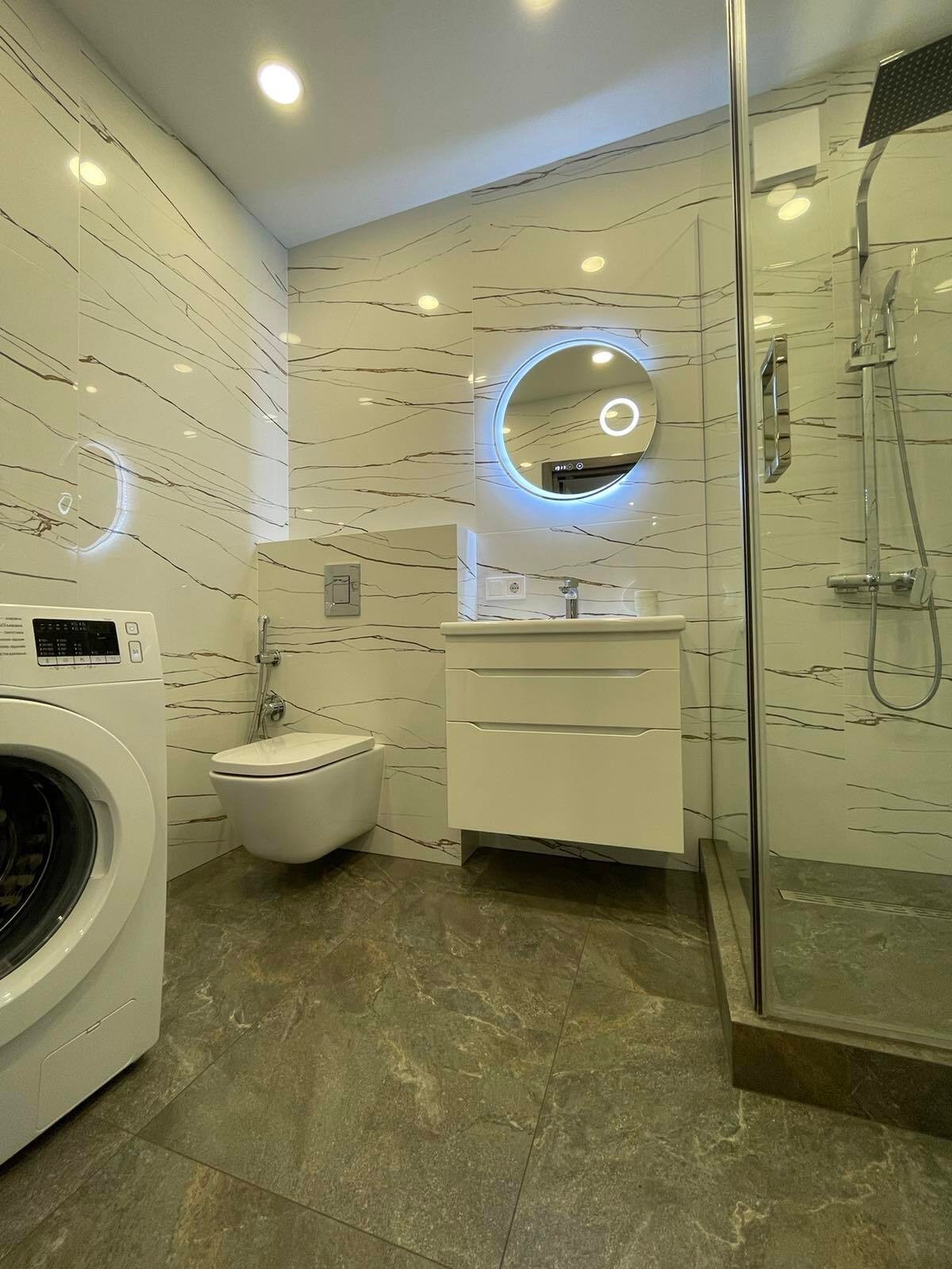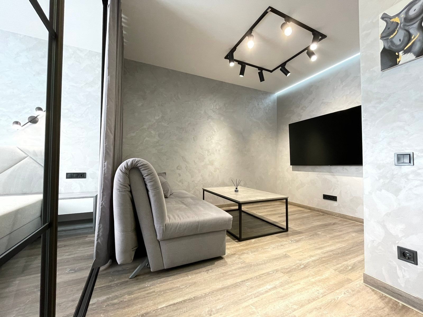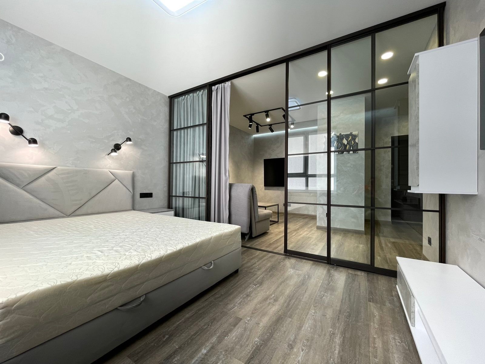 Продам модные апартаменты ЖК Брама, 50/22/16, спланирована в просторную кухню со столовой зоной, спальня+гостиная разделена зонально раздвижной стекляной перегородкой с чёрной фурнитурой Лофт Ремонт произведён только из качественных материалов: водопровод+отопление+смесительная группа - производства Италии, Чехии, Германии! Электрика - Schneider Electric Радиаторное отопление + теплый пол по всей квартире Гардеробная меблирована. Смонтирована мобильная межкомнатная раздвижная система и спланирована на 2 полноценные комнаты. Все стены - декоративное покрытие с эффектом бархата Бесщелевые натяжные потолки с лед подсветкой. Напольное покрытие - кварц винил (кроме санузла) Установлен домофон и высокоростной интернет Триолан Полная комплектация качественной мебелью и техникой