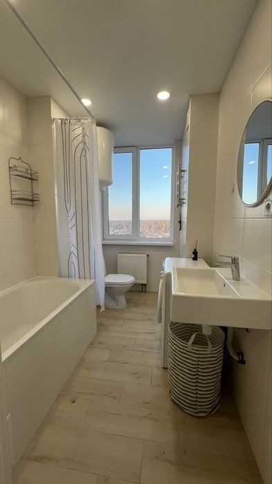 Оренда 2-кімнатної квартири в сучасному ЖК 4U, вул. Олега Мудрака, 1Б (м. Академмістечко) Квартира розташована на 13 поверсі з панорамним видом на захід сонця У квартирі є все необхідне для комфортного проживання: • Пральна машина, бойлер, електрична рушникосушарка • Електрочайник, мікрохвильова піч, електроплита, духова шафа, холодильник •Телевізор, кондиціонер, розкладний диван •Сучасний ремонт з авторським дизайном, великі панорамні вікна Будинок і територія: • Закрита територія, відеоспостереження • Гостьовий паркінг, дитячий і спортивний майданчики • Власна котельня • Рецепція з кавомашиною, диваном для відпочинку, платіжним терміналом і поштоматом • Вхід у Нову пошту №158 та супермаркет прямо з двору • У будинку: Spar, Osama-Sushi, Hedonism Coffee, салон краси, Хмільний Пес, перукарня! На випадок блекауту: Працюють усі ліфти, рецепція, інтернет, опалення, водопостачання та освітлення в місцях загального користування (завдяки генератору). Інфраструктура: • Зупинка - 2 хв • М. Академмістечко - 10-12 хв • Сільпо, Новус, Фора - 12-15 хв • Sport Life, ярмарок - 10-15 хв • Ліс - 6 хв, озеро - 25 хв • ТРЦ Lavina - 3 км Умови оренди: • Оплата за перший місяць + гарантійний внесок в розмірі одного місяця оренди (повертається при поверненні квартири в належному стані ) • Комісія агенту - 50% • Є можливість орендувати додаткове приміщення для зберігання речей на -1 поверсі • Всі тарифи «для населення» • Перша секція ЖК Телефонуйте або пишіть у Viber/Telegram - показ у зручний час!