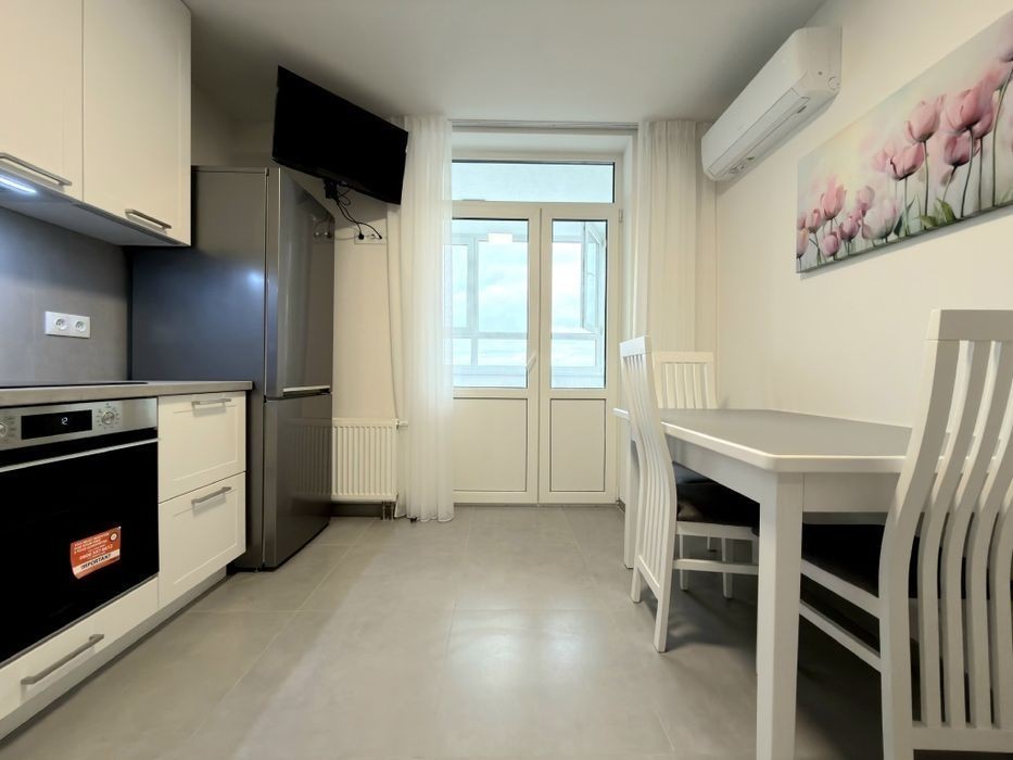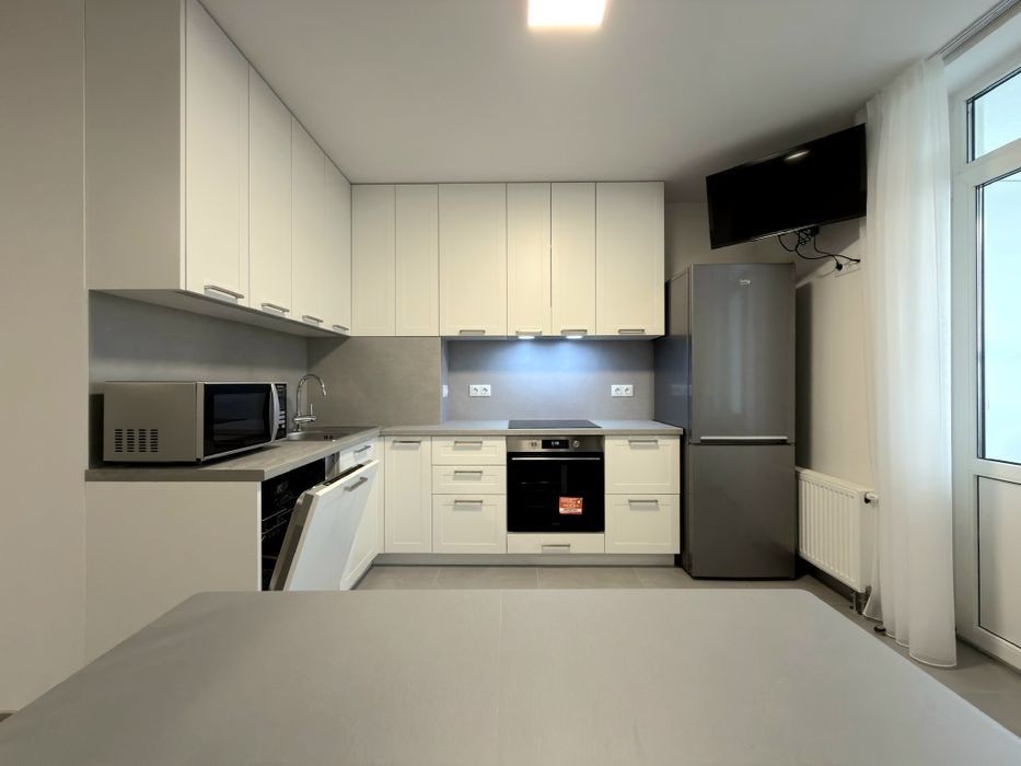 Вперше пропонується в оренду євродвокімнатна квартира в престижному комплексі біля метро Теремки, ЖК Одеський бульвар. До метро 15 хв пішки або 10 хв маршруткою. В комплексі є супермаркет, поруч ТРЦ Respublika, ВДНГ. Квартира з окремою зоною вітальні, кухнею і спальнею. Зроблений якісний дизайнерський ремонт. Максимально укомплектована меблями і технікою для комфортного проживання: вбудована кухня з посудомийною машиною, системою фільтрації води, мікрохвильовою піччю, 2 телевізори, 2 кондиціонера, двоспальне ліжко з ортопедичним матрасом, 2 шафи-купе, диван, бойлер, пральна машина. Комісія ріелтора 50% при заселенні.