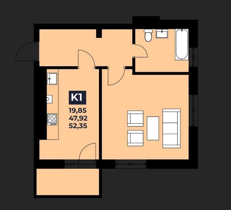 Простора 1 кімнатна 52 м. кв по вул. С. Стецько