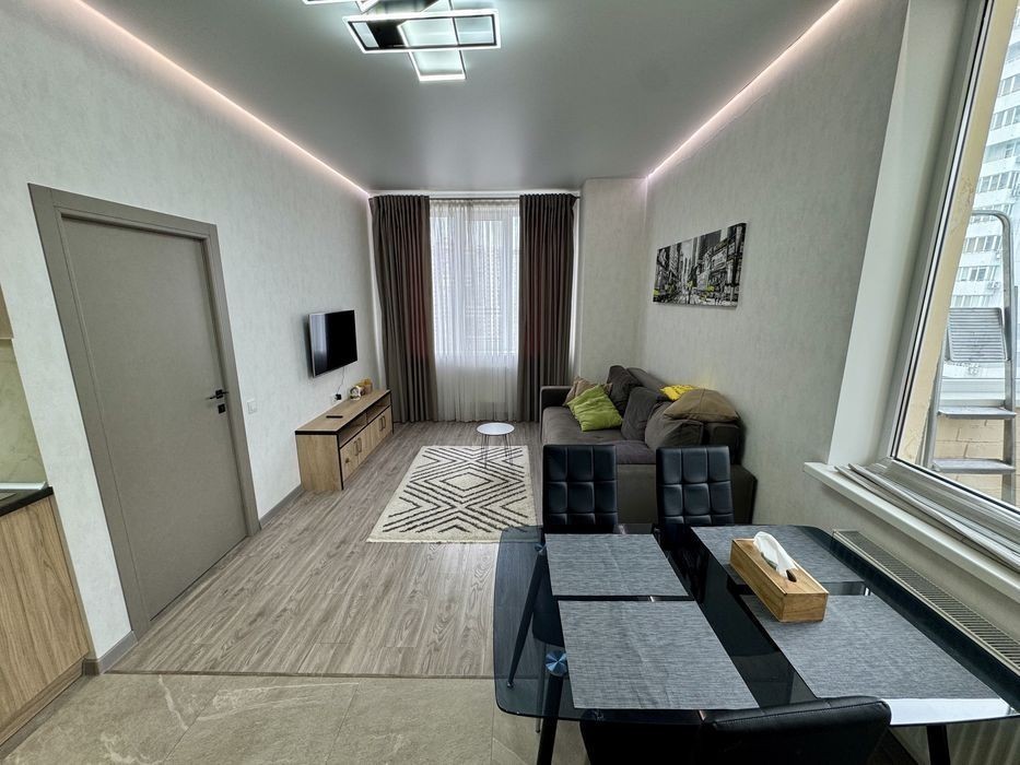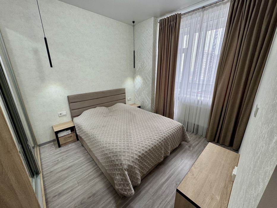 Сдам классную квартиру в ЖК Одиссей. Закрытая, охраняемая территория, паркинг, отлично развита инфраструктура. Квартира расположена на 14 этаже, общей площадью -60 кВ. Планировка : спальня + кухня -студия. Есть гардеробная, 2 балкона. Выполнен качественный современный ремонт. Квартира укомплектована всем необходимым для комфортного проживания: большая двухспальная кровать в спальне, шкаф-купе, в кухне-студии есть зона отдыха с раскладным диваном и телевизором, кондиционер, холодильник, варочная поверхность, духовка, санузел с душевой, стиральная машина, бойлер. Квартира сдается долгосрочно. По всем дополнительным вопросам - звоните.