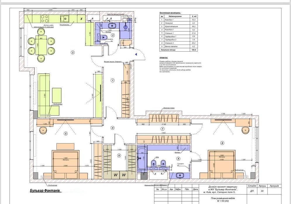 Продаж нової 3-х кімнатної квартири 120 кв. м. 6-й поверх в Бульвар Фонтанів по авторському дизайн проєкту по вул. Саперне поле 5 Є можливість 3-х повноцінних спалень ( на дизайн-проекті зеленою лінією вказана стіна) закладено по проекту. ЖК Бульвар Фонтанів", це комплекс із закритою територією, двір без авто Функціональне планування. Затишна тепла квартира Дві сторони Техника Bosch Паркет Керамограніт Травентин Запроектовано багато світла: LED, трекові светильники, лед тіньового шва Спальня з власною ванною кімнатою Диван PUFETTO Ліжко Domingo Матрас Karibian Стіл кухонний керамограніт В квартирі якісний підігрів підлоги DEVI Мультиспліт система кондиціонування повітря Нові броньовані двері Багато шаф Міжкімнатні двері скритого монтажа Автоматичний захист від стрибків напруги Автомат на кожну групу Майстер вимикач Відеодомофон Лічильники на тепло, воду Та багато інших чудових рішень Генератор підключений до ліфтової. 3-х рівневий підземний паркінг, в який зручно спуститись ліфтом